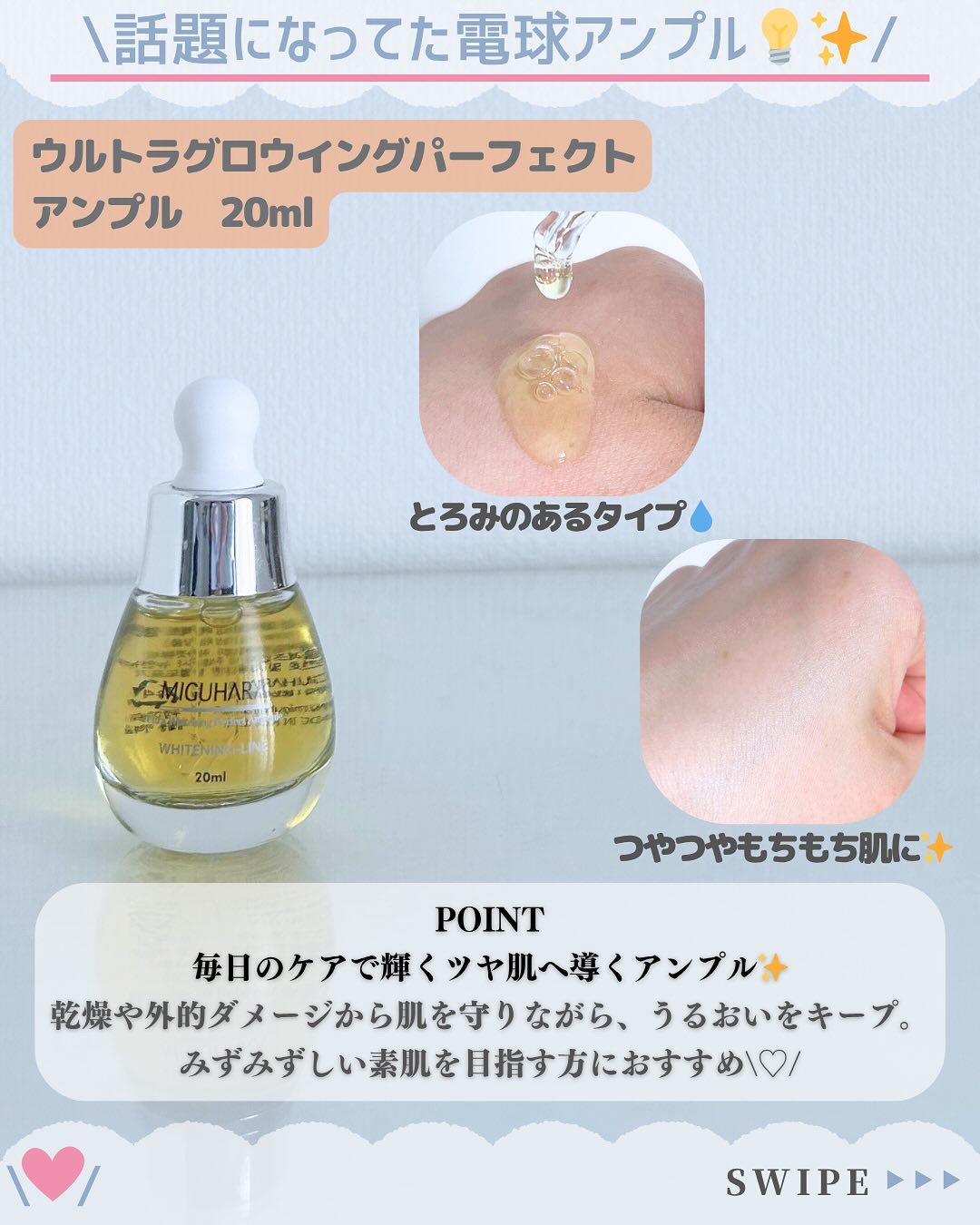 MIGUHARA▶︎ウルトラホワイトニングパーフェクションスキン肌の奥深くまでしっかり浸透!乾燥やキメの乱れを整えて美肌に導く🤎輝き、ツヤ、うるおいケアがこの1本で!たっぷりのうるおいとともに、シルクのような柔らかさと瑞々しいツヤを与えます😌...