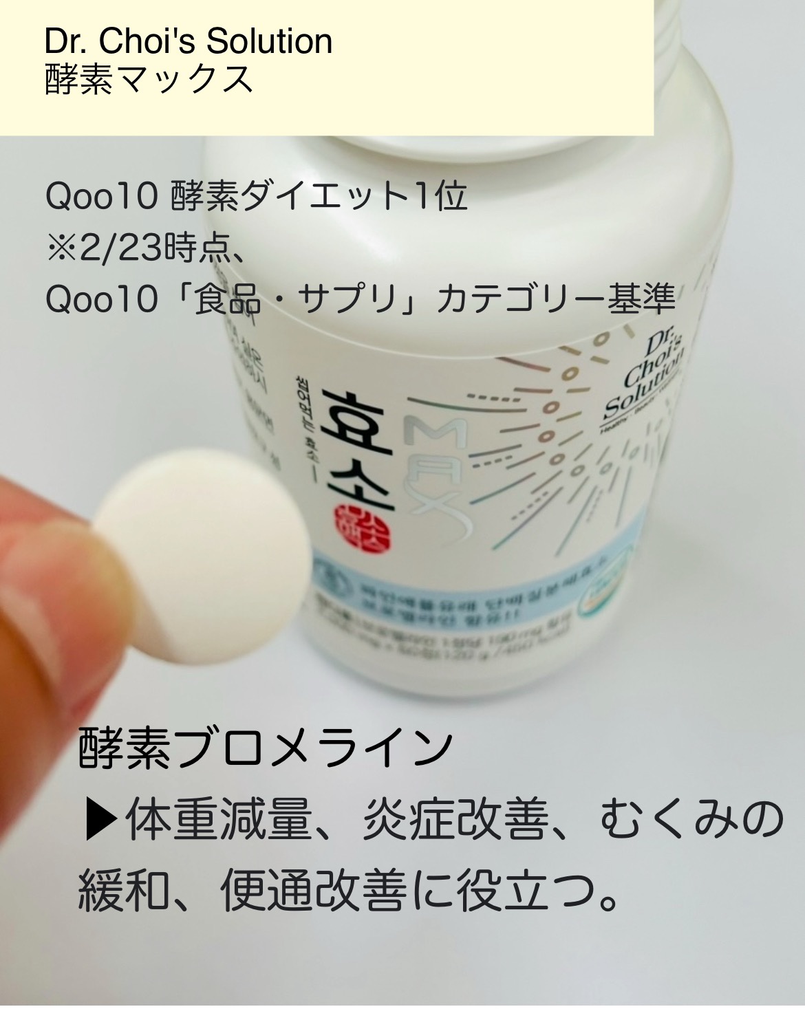 **こんにちは!美容大好きむうです!今回はDr.Choi'sSolutionの『酵素MAX』消化改善に役立つブロメラインを最大限に含有している噛んで摂取する健康機能食品✨パイナップル味のラムネみたいな美味しいサプリで、食前もしくは食後に食べる...