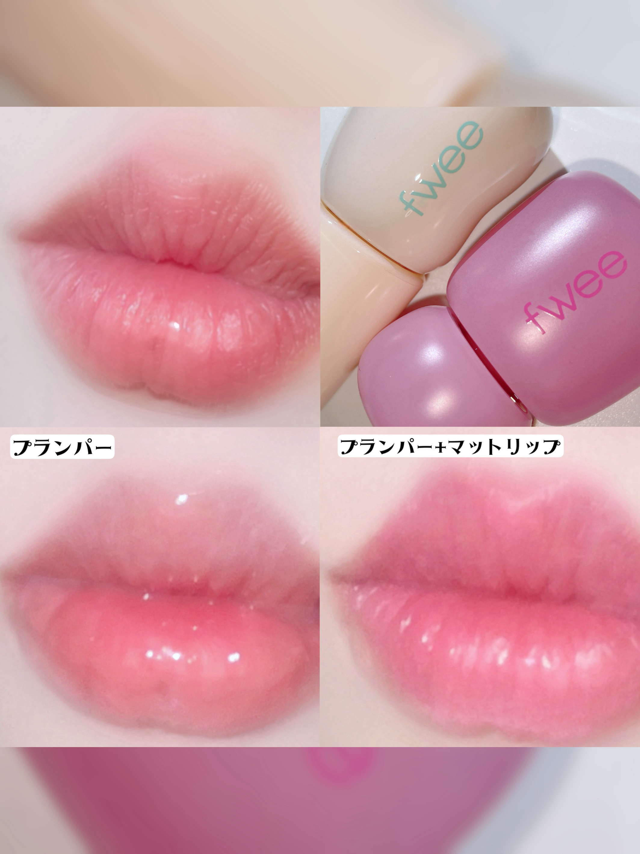 マットティント×リッププランパーでふわふわナチュラルマット完成💗この組み合わせはfweeのスタッフさんおすすめの合わせ方!✧fweeピンクオブセッションステイフィットティント/M09PEACHPINK4Dボリューミングプランパープランパー...