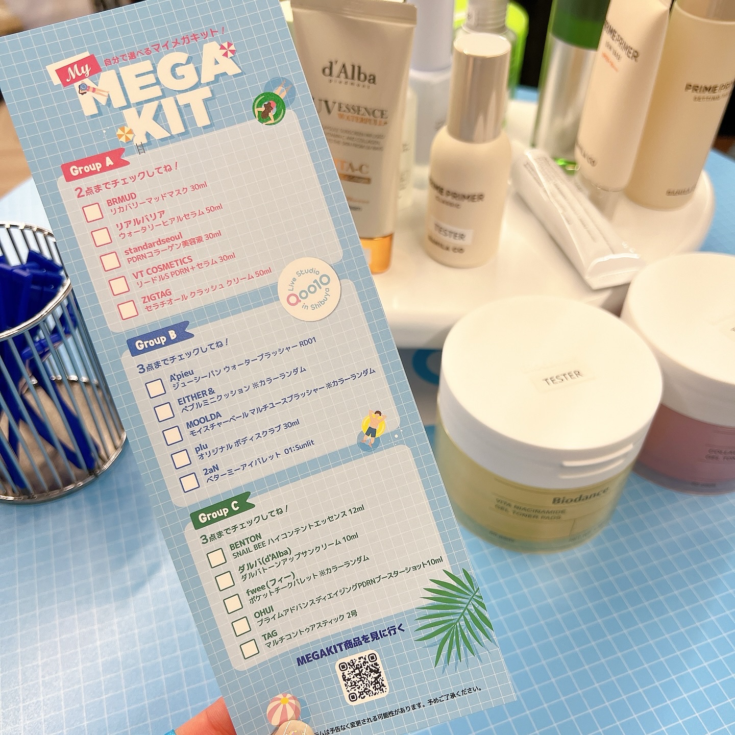 渋谷にあるQoo10LiveStudioで開催中のPOPUPイベントにいってきたよ🌟 人気の韓国コスメなどを手に取って実際に試せしたり専属スタッフに質問できる☺️ 最大8個のアイテムを選択 →オリジナルMy Megakitを作成 気になる商品が何個かあって何を選ぶが悩んだ! イベント会場で必須ハッシュタグと共に写真をSNSに投稿するとスクラッチカードを1枚Get🎀