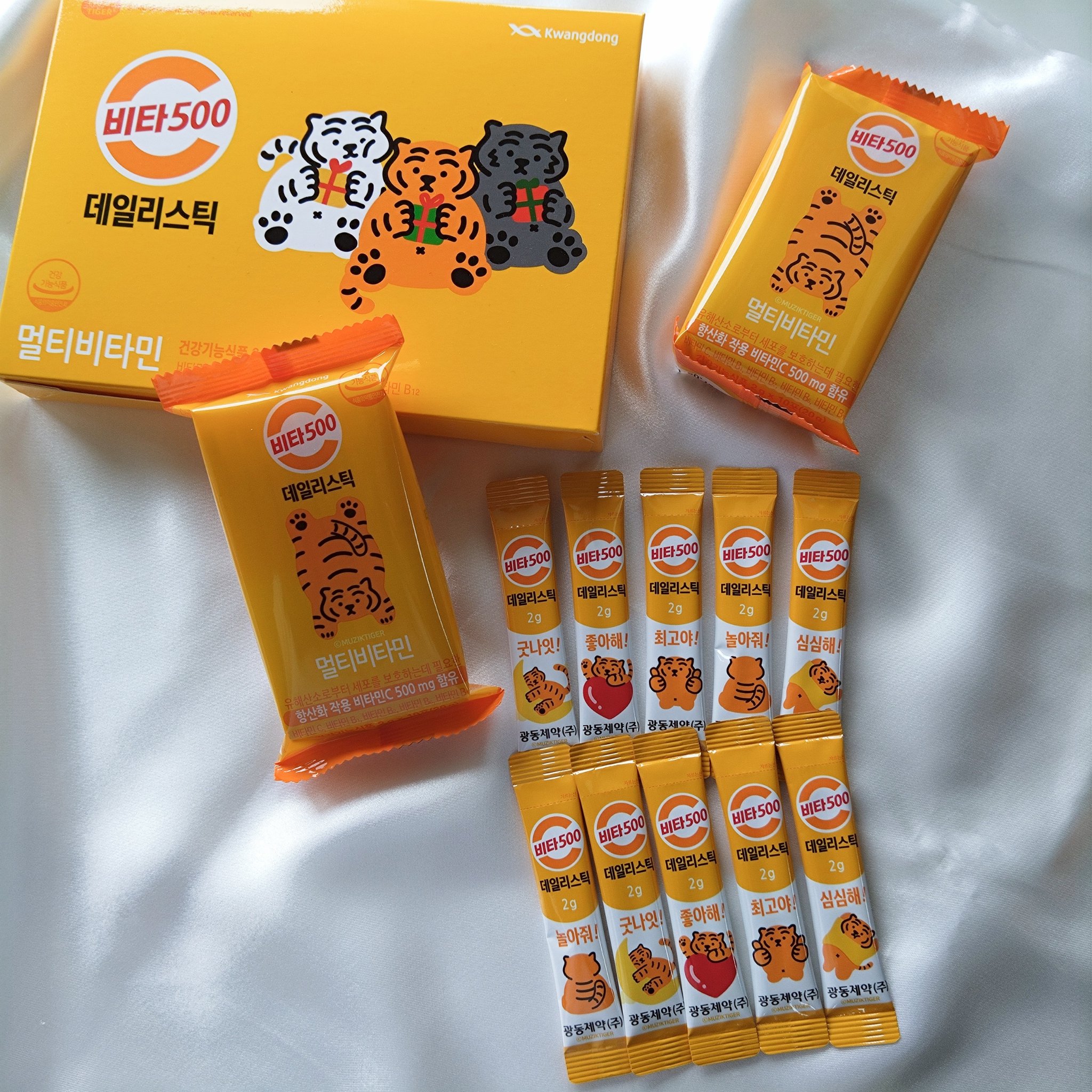 クァンドン ビタ500デイリースティック30包スティック1本で手軽にビタミンCを500mgチャージできるデイリースティックです✨特長🌼韓国ビタミンギフト・日本Qo010健康食品1位獲得🥇🌼1包だけで、十分なビタミンC500mg補給🍋🌼美白、抗...
