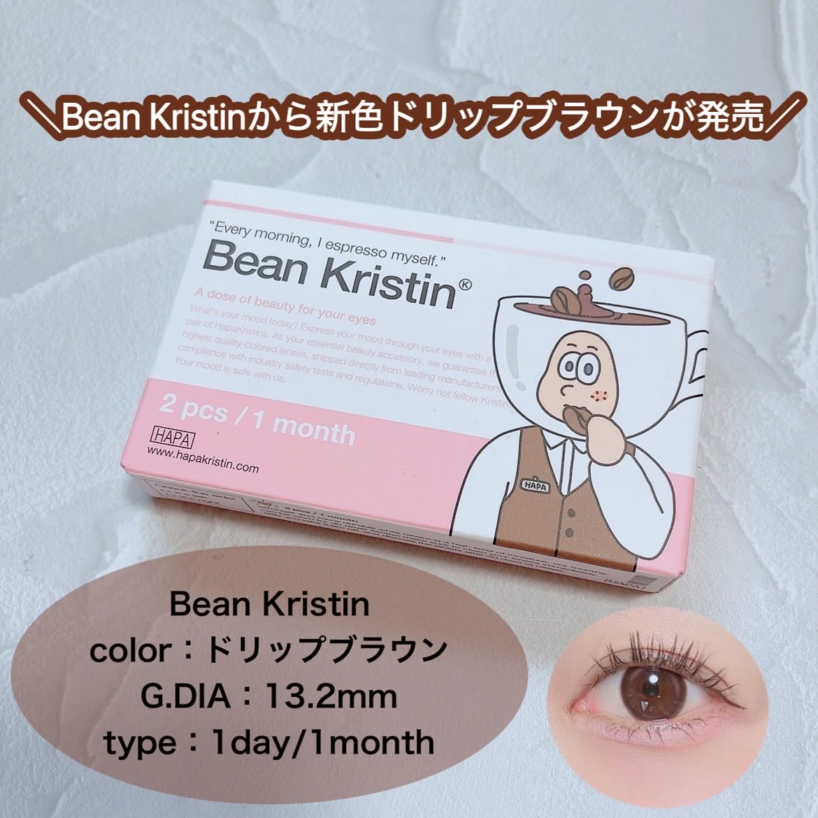 大人気 Hapa kristinから新色登場❕❕ 深みのある墨色にブラウンハイライトが加わった洗練されたカラーのコールドブラウン🪄 着色直径が大きすぎないからナチュラルに つけたい人にもおすすめなカラコン🧏🏻♀️ 気になった方は今メガ割で20%offで購入できるのでぜひチェックしてみてね✅