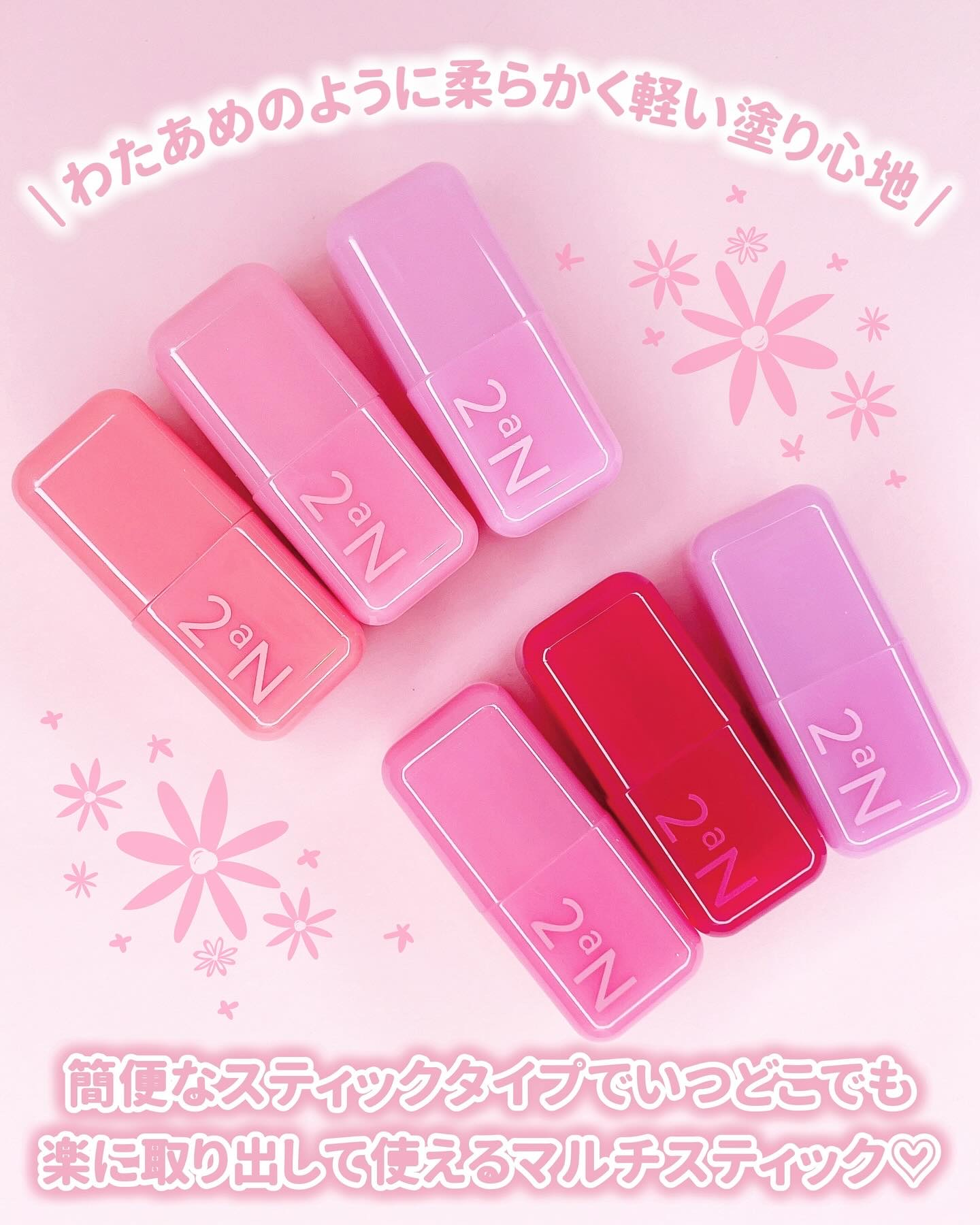 1本で簡単にふんわり可愛いメイクに仕上がてくれる マルチスティック✨ 軽くなめらかな塗り心地で、肌にしっかり溶け込むようになじみます◎ 私の推しは【02 コットンフィズ】と【06 クリームモーヴ】🫶