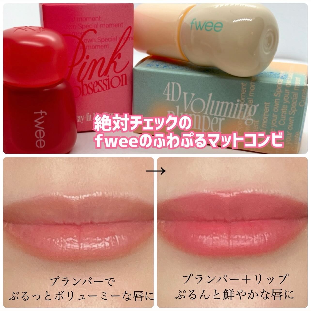 fwee様のふわふわマットリップを作る最強コンビとして✔ピンクオブセッションステイフィットティントM02ライラックピンク✔4Dボリューミングプランパークリアミントを頂きました✨マットリップなのに唇がしわしわしないの感動しました🥳先にプランパー...