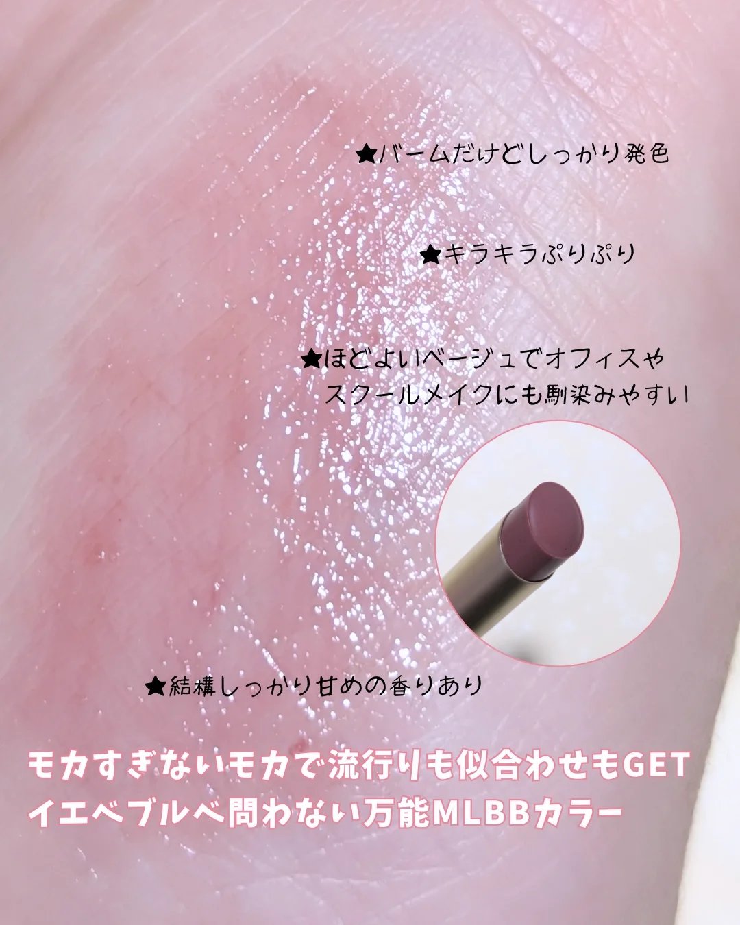 塗り心地 良くも悪くも口紅塗ってますよ感はあり🙆♀️ ひと塗りでシアーな薄づき感を楽しんでもいいし フルリップゴリ塗りでツヤツヤポッテリさせることも出来るけど 塗り重ねるとちょっと重たくなるかも…🤔💭 コスパ 色持ち、発色、塗り心地 トータルで見てこれ以上のコスパ最強のリップはないかも 660円だよ?フラペチーノと同じ値段かそれより安い💰 色が可愛い! ほんとにこの値段でいいのかという発色 特に新色06はめちゃくちゃ可愛いローズミルクティーカラーで ミルクティーが好きすぎて憧れのあったわたし的には 本当にありがたいミルクティーカラー☕️
