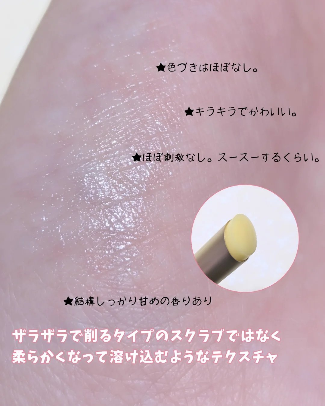| リップスクラブランキング第7位 | 程よいジャリジャリ感で、メントールのスースーは塗った直後はあんまり感じず、しばらくしてからこちらも程よいスースー感🌿 | 詳細を見る | ||
