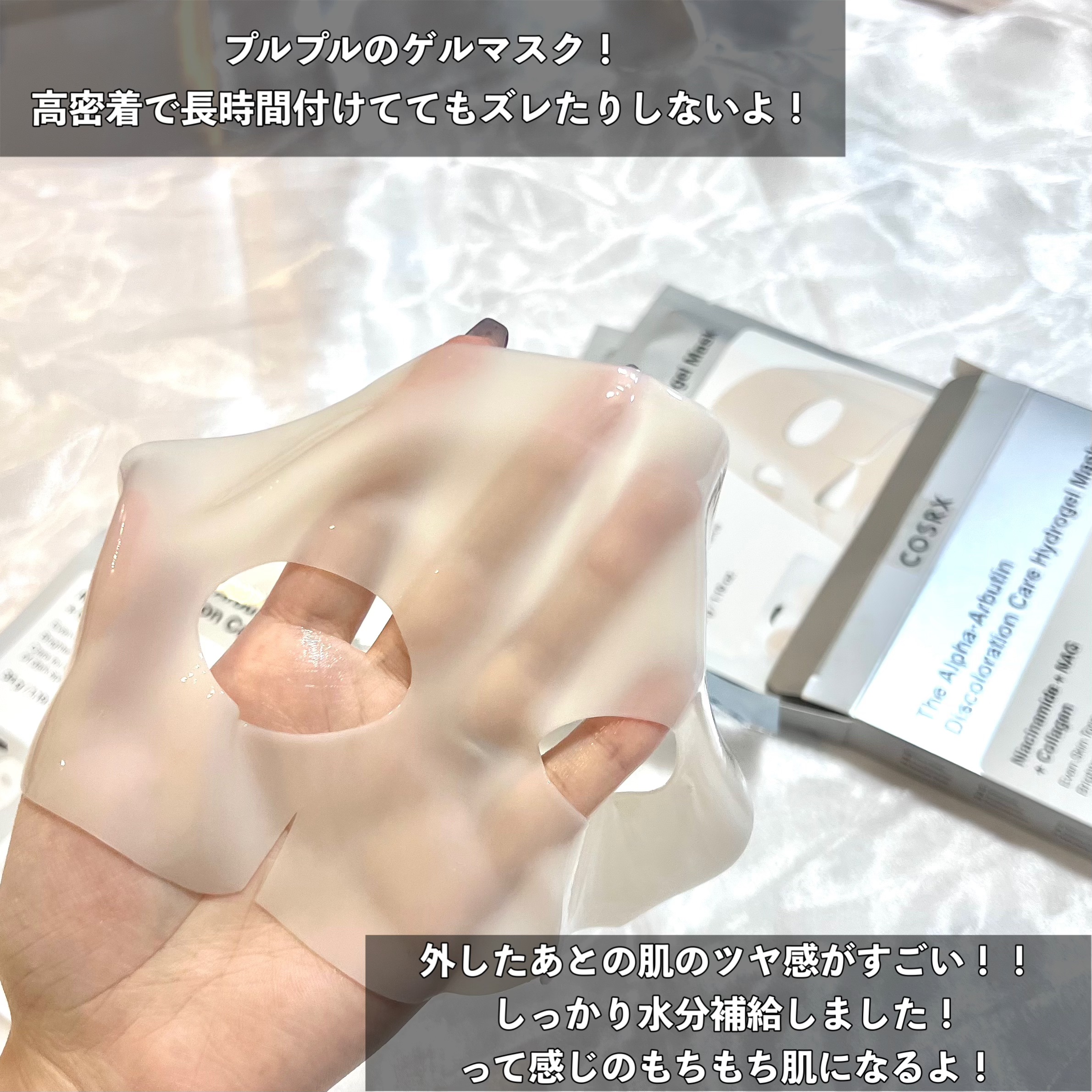 COSRXのRXザ・アルファアルブチン2ニキビ跡ケアセラムとRXザ・アルファアルブチンハイドロゲルパックを使ってみました💕RXザ・アルファアルブチンハイドロゲルパックはプルプルなゲルパックで、34gの美白セラムを固めたそう🌸30分後から透明に...