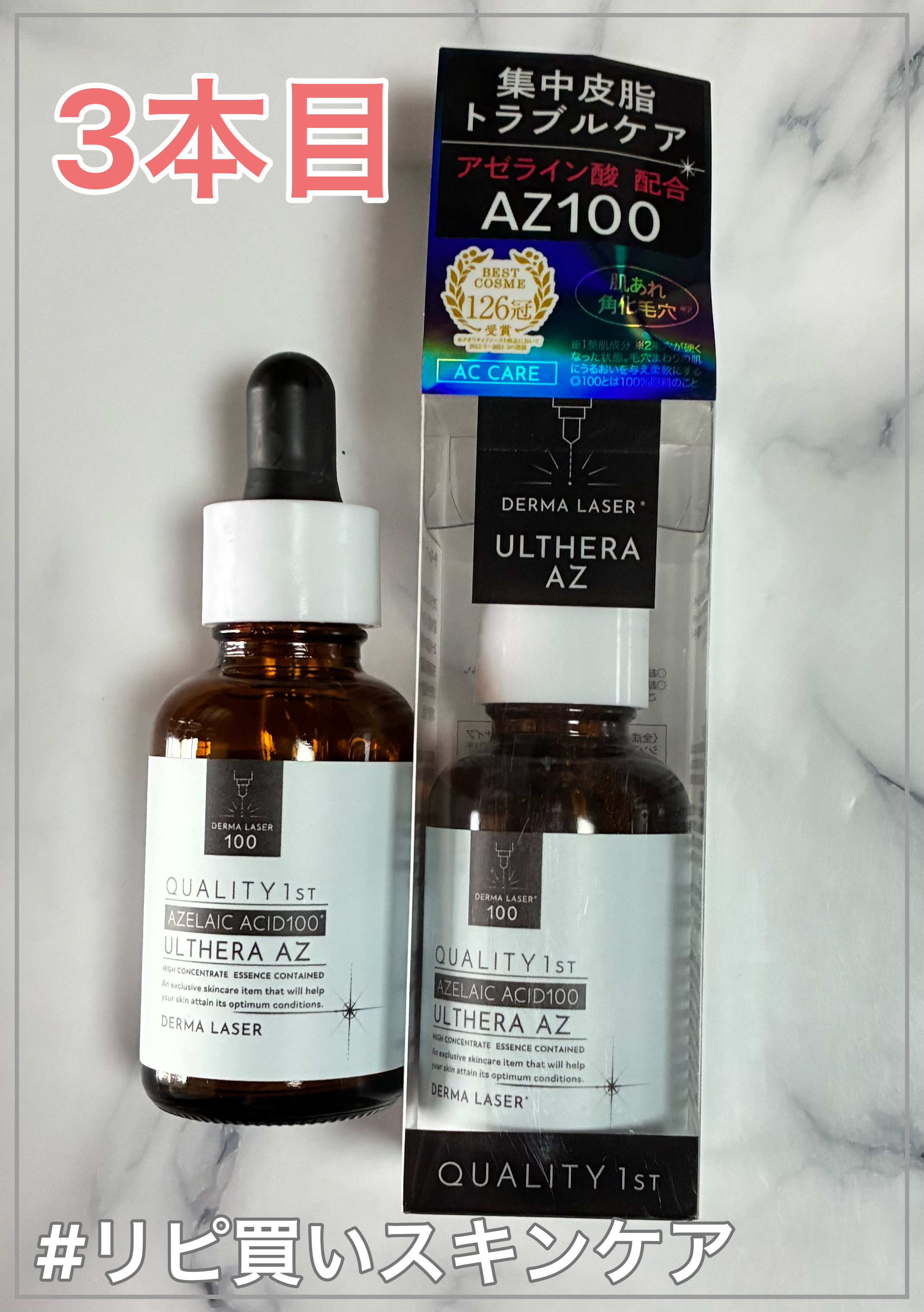 クオリティファーストの皮脂トラブルケア美容液を使わせて頂いた。■クオリティファーストダーマレーザーウルセラAZ (30ml税込2,200円)アゼライン酸*¹がシリーズ最高濃度*²で配合された、皮脂トラブル・肌荒れ・角化毛穴*³対策美容液。アゼ...