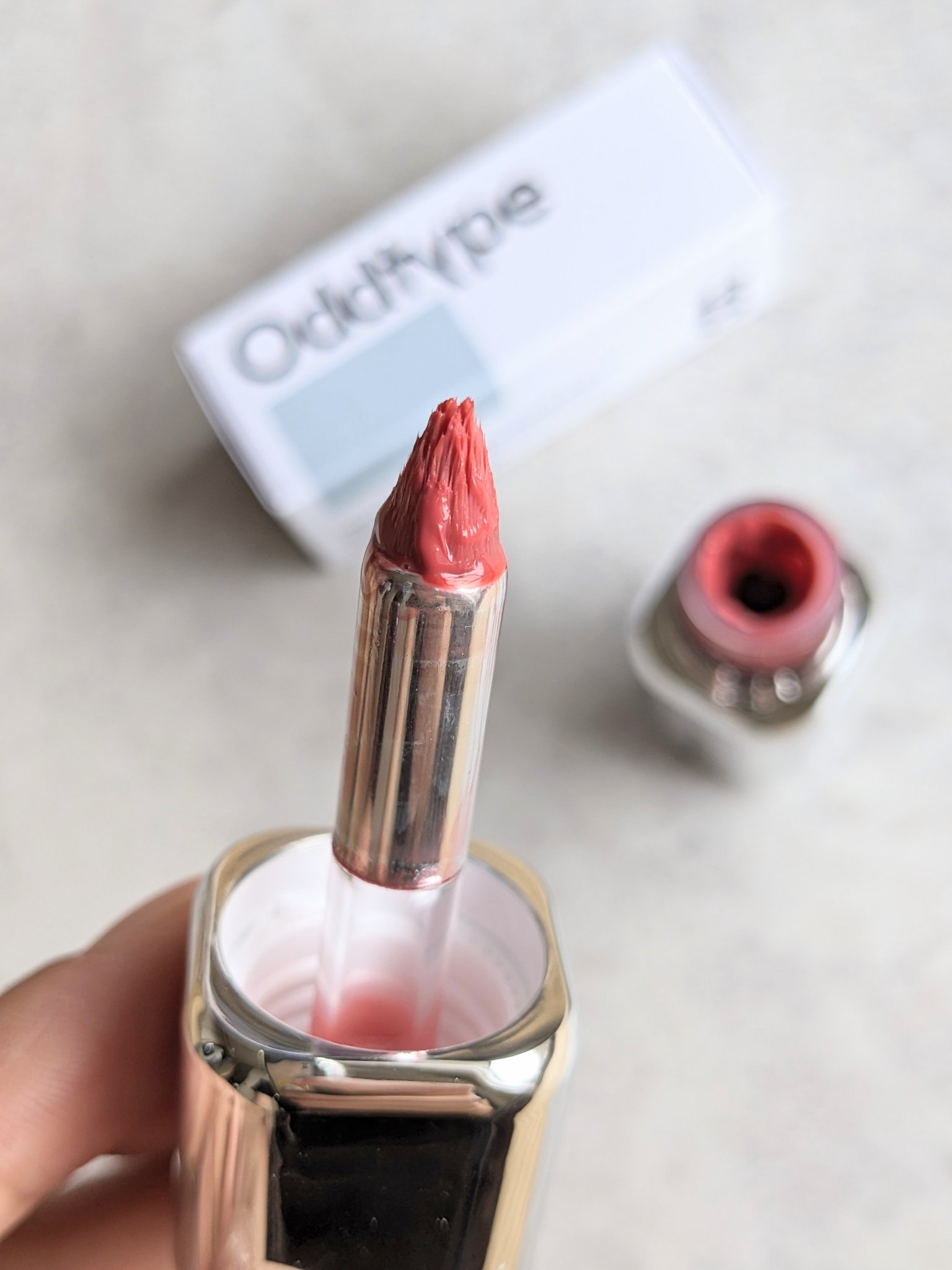 Oddtypeアンシーンミラーティント革新的なアプリケーターが特徴的✨424エヌエー幻想的なブラッシュドコーラル透け感がある付け心地と潤いながら唇のプランプ効果もバッチリ👌濃さの調節や口角まで塗りやすいブラシのアプリケーターがとっても使いやす...