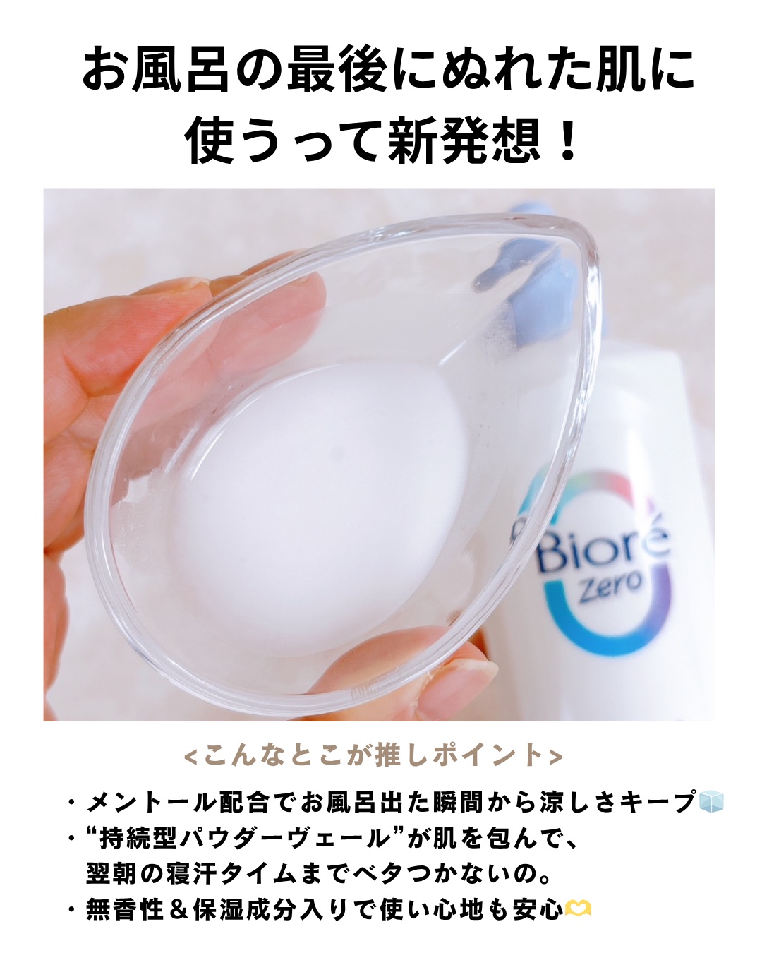 花王さまからいただきました🛁🫧🌟ずーっとサラサラ✨快適ヴェール🫶ビオレZeroお風呂で使う汗ケアローション!夏のストレスの一つ、お風呂後のドライヤー…そんなとき、このアイテムが味方に🦸♂️!シャワー型のキャップで背中にもピャーっと塗布しやす...