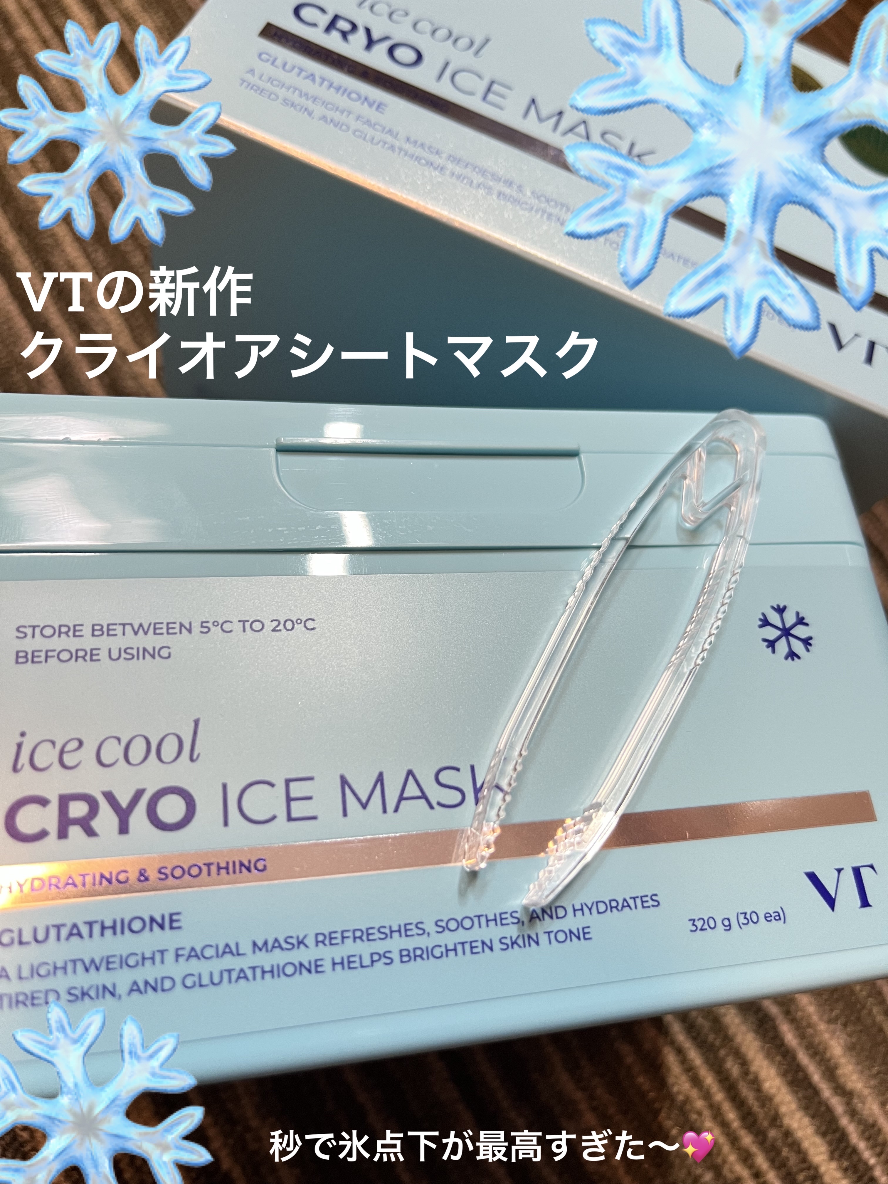 - べたつきが気になる暑い季節にぴったりな、ひんやり使用感あふれる30枚入り大容量マスクパックがVTから新登場! 氷河水*1やキシリトール1*配合で、肌にひんやり感を与えてリフレッシュ。 さらにグルタチオン*2・ナイアシンアミド*2配合で、夏の紫外線による乾燥ダメージケアにも! 肌にすばやくひんやり感を与える、夏にピッタリのマスク。 リピーター多数のVT人気「箱型マスク」シリーズから、この夏限定のクライオアイスマスクで“涼しさ感じるスキンケア”を始めましょう。 *1清涼成分 *2整肌成分 ■このような方へおすすめ 乾燥や紫外線などの外部刺激を受けた肌 紫外線、気温の高さにより乾燥した肌 夏シーズンの乾燥でくすんだ肌ケアが必要な方 暑い夏涼しくスキンケアをしたい方