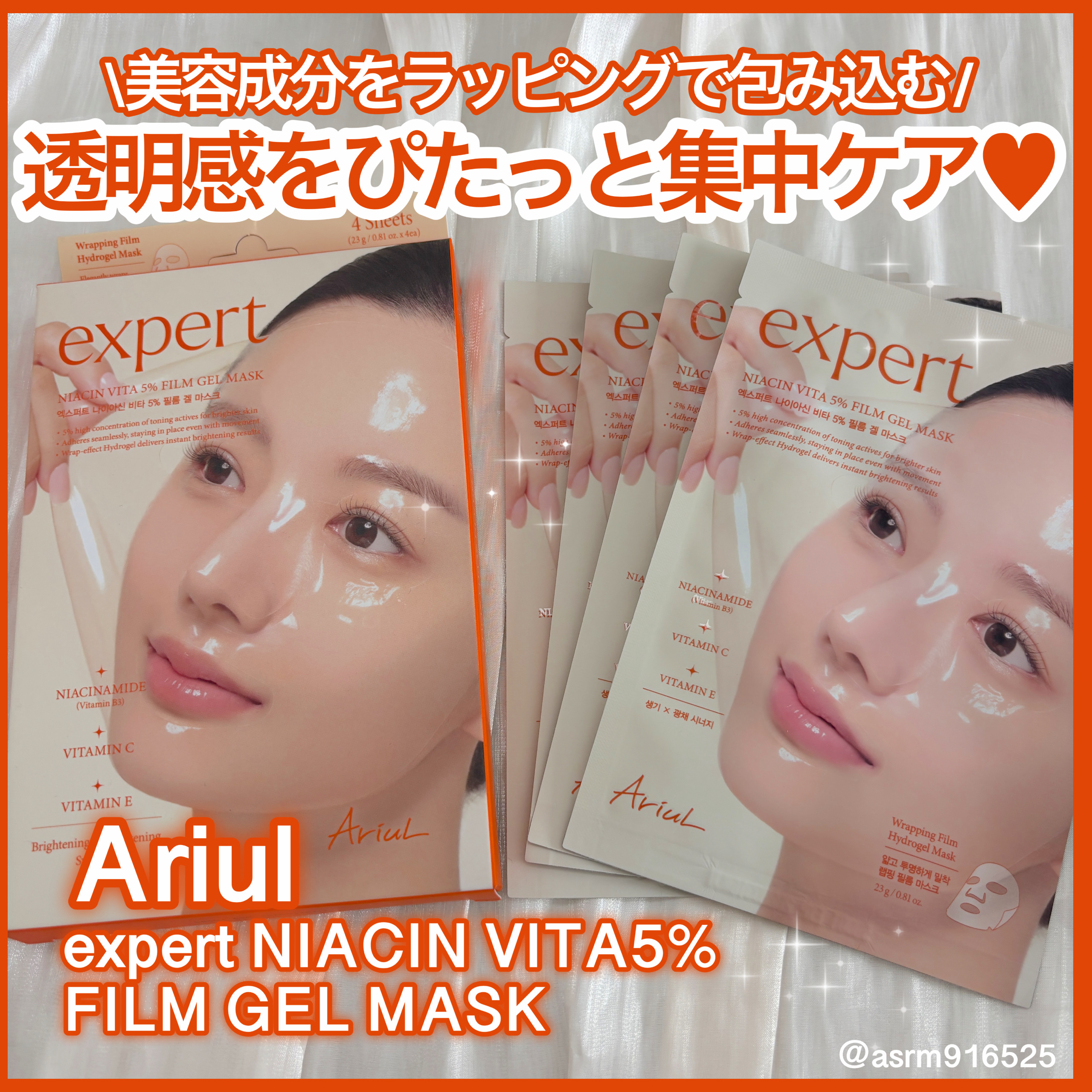 🪷おおきに、ローちゃんどす~🪷@ariul_jp様からエキスパートナイアシンビタ5%フィルムゲルマスク4枚お試しさせて頂きました❣️☝️わずか0.3mmの超薄いフィルムゲルマスク!☝️まるでラッピングしたような仕上がり感とともに動いても落とさ...