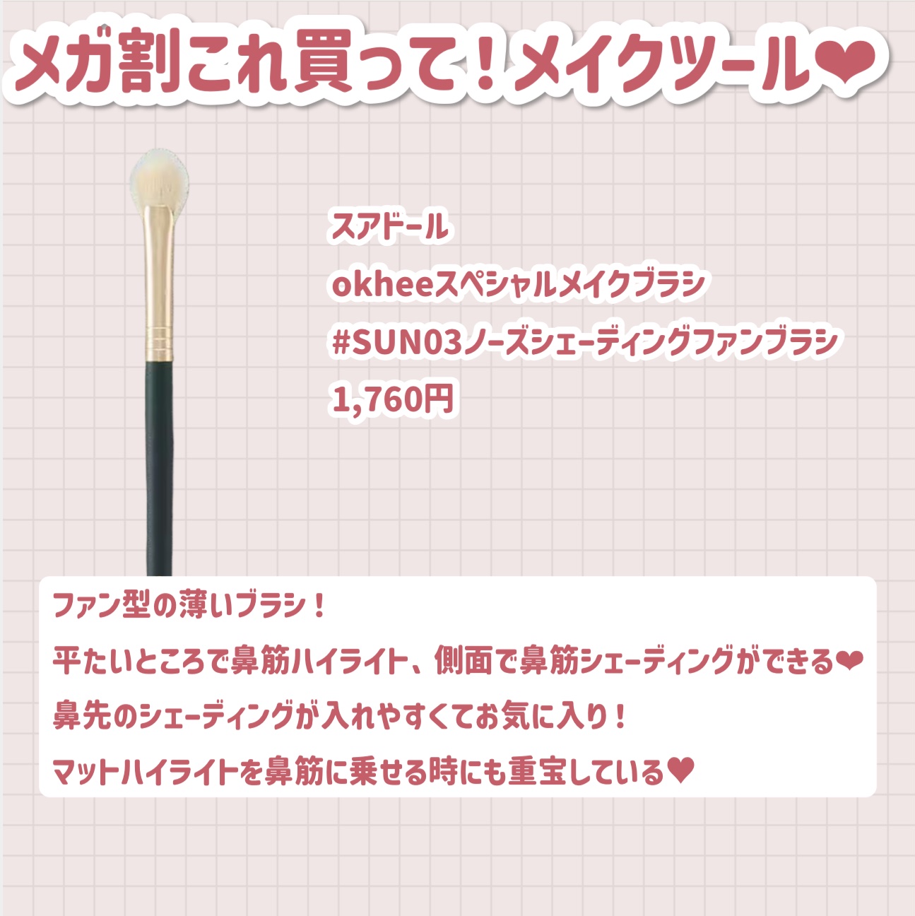 | 美容グッズ・美容家電ランキング第9位 | ホント使いやすい! 毛先が平らでムラにならず一瞬で馴染んでくれる♡ | 詳細を見る | |