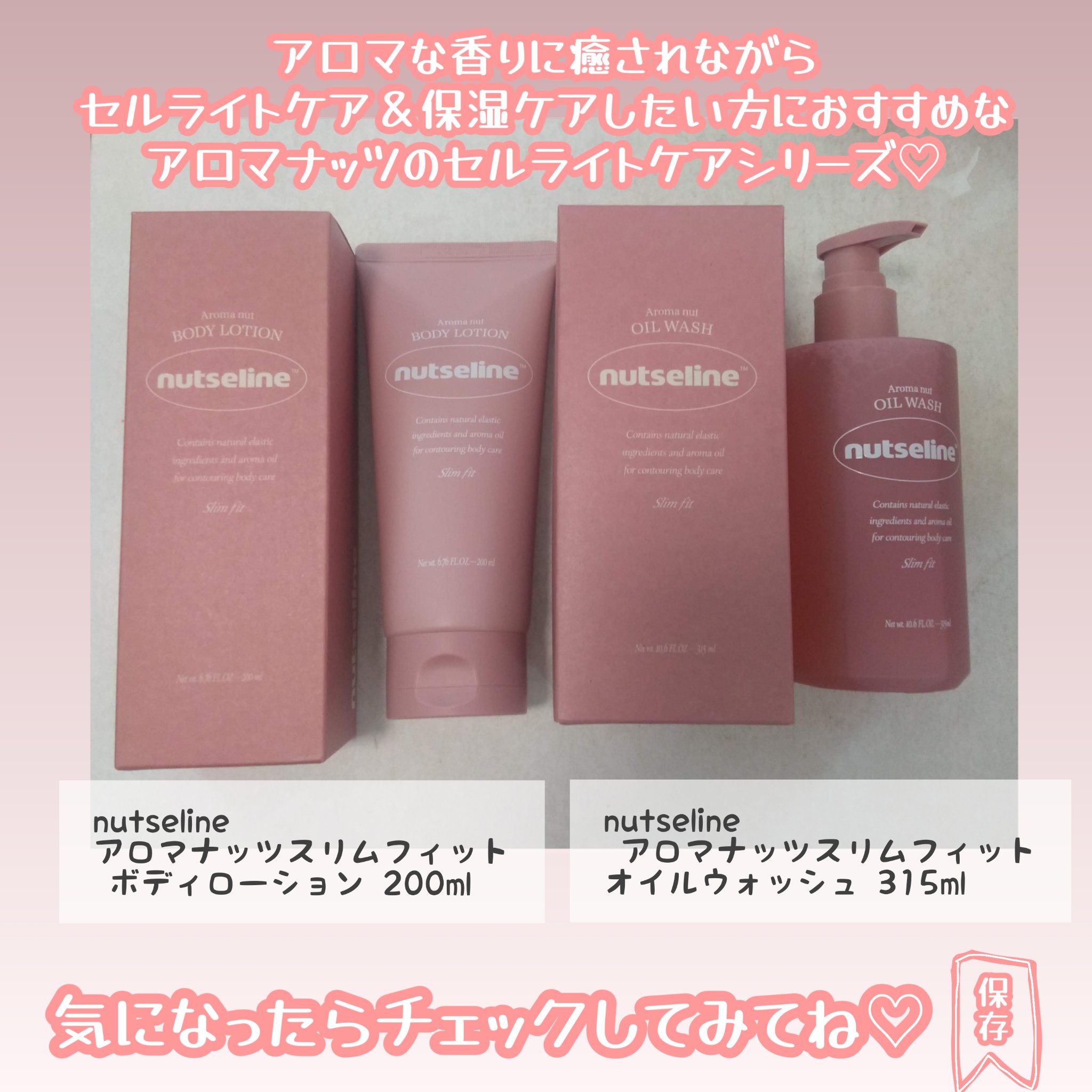 nutseline🌺★アロマナッツスリムフィットオイルウォッシュ★ナッツスリムフィットボディローションアロマナッツスリムフィットオイルウォッシュ🫧気になるセルライト💦💦にアロマの香りを楽しみながらお腹や太もも😭をねじる…と言うか、もみほぐすよ...