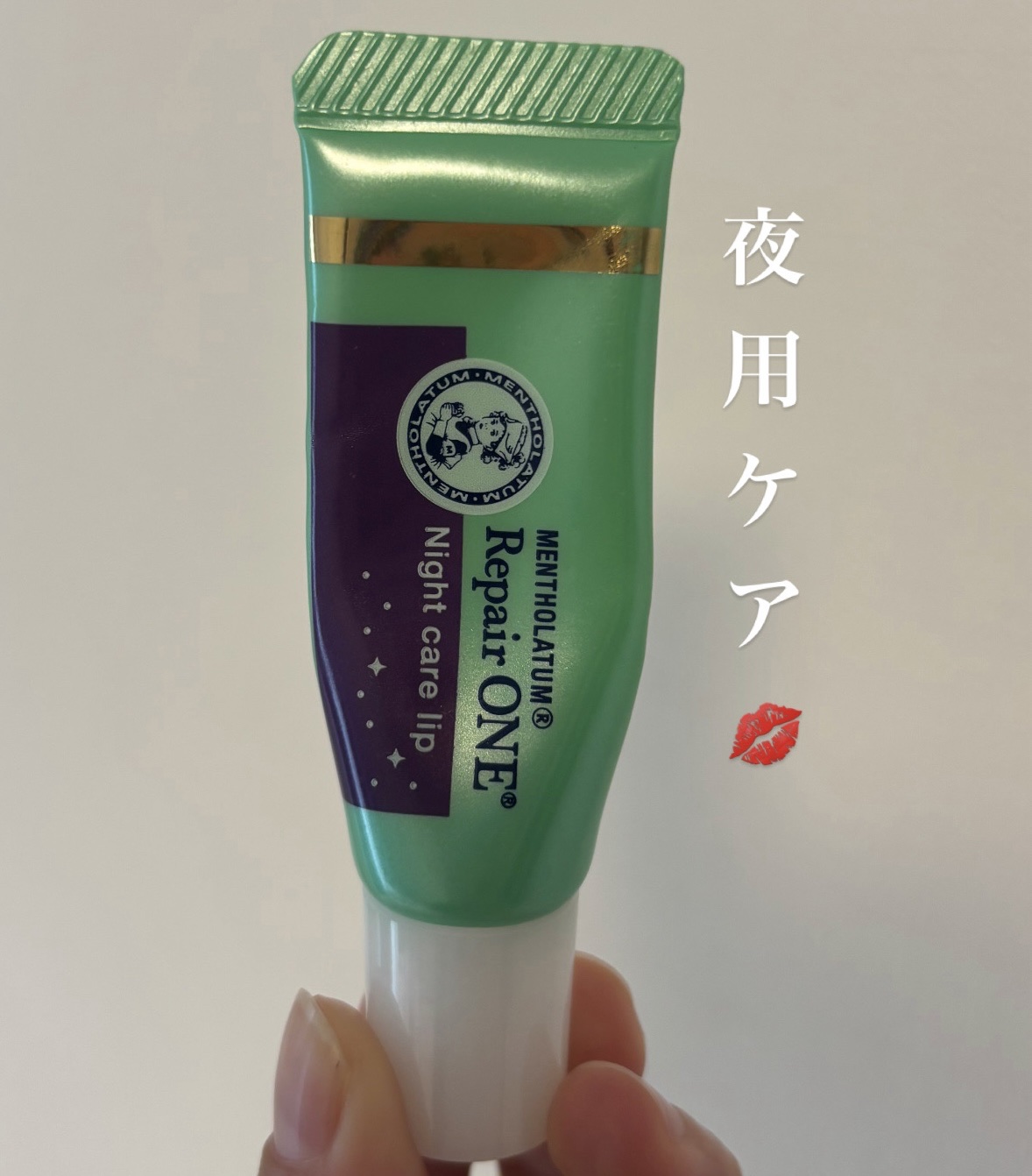 - ※商品パッケージは予告なく変更する場合がありますのでご了承ください。 「メンソレータム リペアワン ナイトケアリップ」は夜塗って集中浸透*1、3つの美容液成分(うるおい成分)配合で保湿パックできるリップエッセンスです。 唇をすこやかに保って荒れを防ぎ、ふっくらとうるおいのある唇に導いてくれます。 さらに、チューブタイプで使いやすく、のびがよく唇の凹凸を埋める縦ジワ密封処方*2も特徴的。 夜塗ってふっくらうるおった唇へ。 *1角層まで *2唇の凹凸を埋める製剤特徴のこと