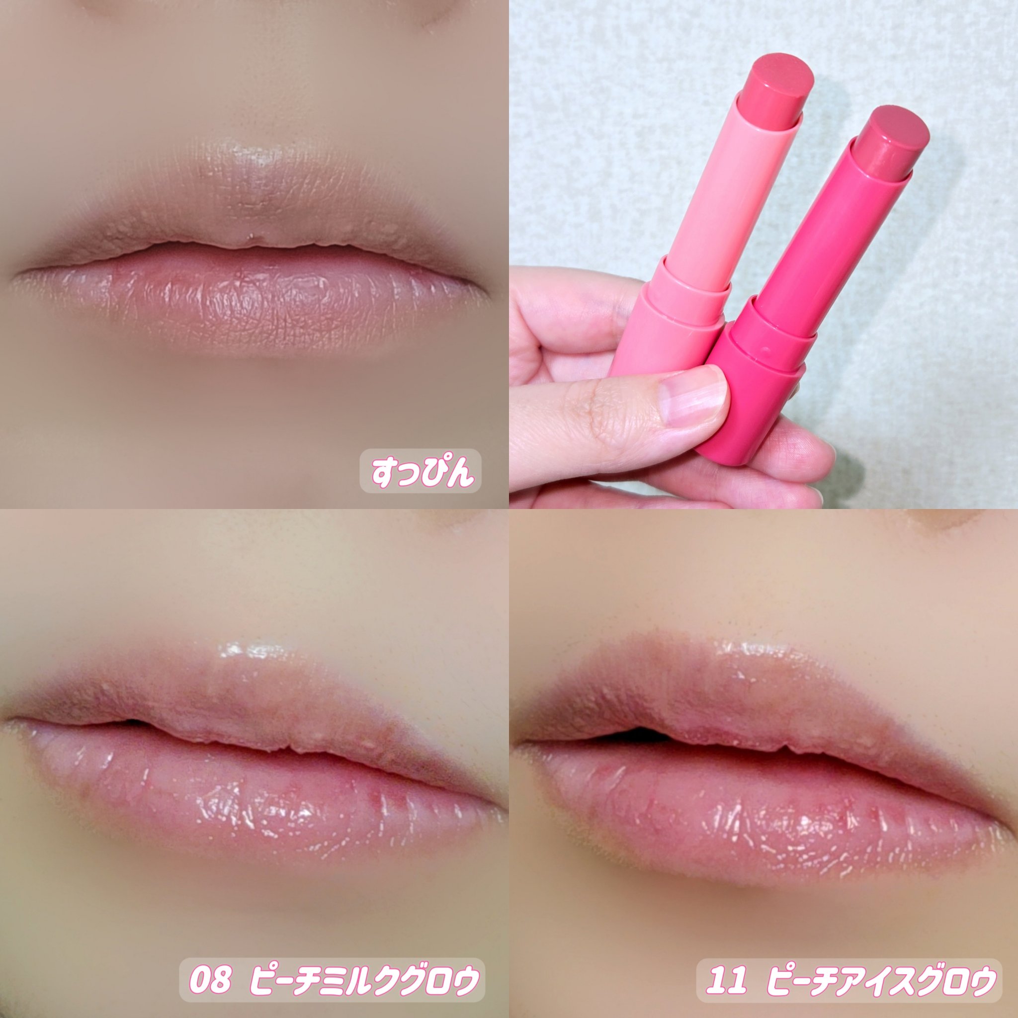 - 【数量限定】 \大人気リップから新シリーズが登場!/ 唇をケアしながらいつでも血色感のあるぷるむち唇を演出 #24時間盛れリップ*1 ♢リップクリームのような保湿感 ♢グロスのようなツヤ感 ♢シアーで透明感のあるカラー ♢いつでも手軽に血色感をプラス 欲しい機能をぎゅっと詰め込んだリップスティック シアー感・保湿力UP*2 誰でも盛れる粘膜系ピーチカラーで 桃果汁たっぷりジューシーな唇が叶う 『シアーピーチシリーズ』 【商品POINT】 ①透明感引き立てカラー 彩度・発色・透け感のバランスを調整した CandyDoll独自のこだわりカラー お肌の透明感を引き立て、顔全体をワントーン明るい印象に ②グロスのようなツヤ感 体温でとろける軽くてなめらかなテクスチャー ひと塗りでちゅるんとしたツヤ感をプラス ③保湿ケア処方 モモ葉エキス・モモ果汁エキス・モモ種子エキスなどの 15種類の美容保湿成分をたっぷり配合 うるおいで唇を包み込み、べたつかずにしっかり保湿ケア *1 効果の持続時間を保証するものではありません。24時間のどんなシチュエーションでもご使用いただけることを指しています。 *2 他シリーズとの比較