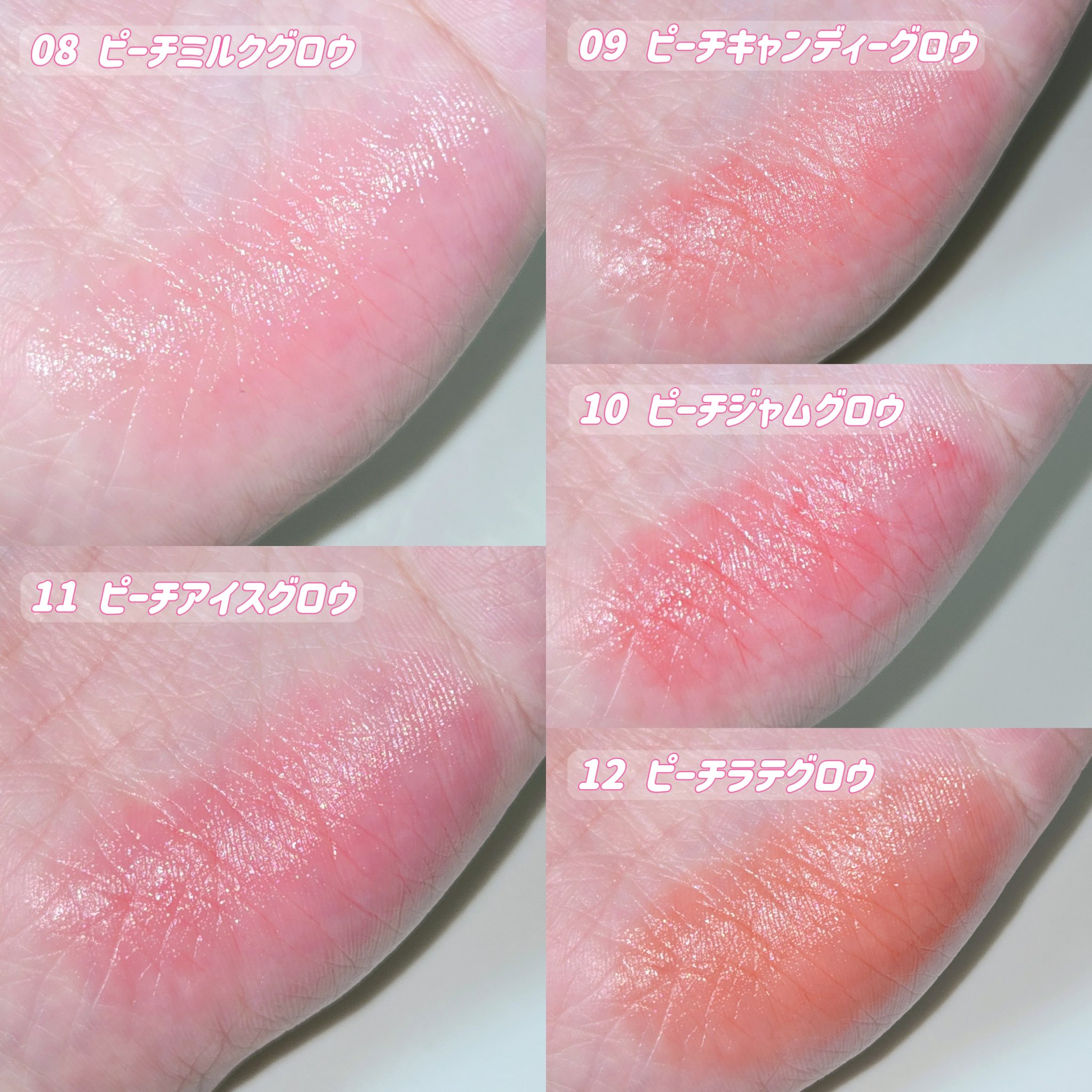 - <00 クリアリッチ> トリメリト酸トリトリデシル、ポリイソブテン、リンゴ酸ジイソステアリル、マイクロクリスタリンワックス、ホホバ種子油、セレシン、イソノナン酸イソノニル、ビスジグリセリルポリアシルアジペート-2、エチルヘキサン酸セチル、ポリエチレン、ヒアルロン酸Na、加水分解コラーゲン、スクワラン、アロエベラ葉エキス、アロエベラ花エキス、ウコン根エキス、カミメボウキ葉エキス、コクシニアインディカ果実エキス、サンゴモエキス、ナス果実エキス、メボウキ花/葉エキス、メリアアザジラクタ葉エキス、メリアアザジラクタ花エキス、ローズマリー葉エキス、アボカド油、アマ種子油、アルガニアスピノサ核油、オリーブ果実油、ヒマワリ種子油、マカデミア種子油、ヤシ油、ミネラルオイル、酢酸トコフェロール <04 ストロベリーグロウ> トリメリト酸トリトリデシル、ポリイソブテン、リンゴ酸ジイソステアリル、マイクロクリスタリンワックス、ホホバ種子油、セレシン、イソノナン酸イソノニル、ビスジグリセリルポリアシルアジペート-2、エチルヘキサン酸セチル、ポリエチレン、ヒマワリ種子油、ヤシ油、アマ種子油、アボカド油、アルガニアスピノサ核油、マカデミア種子油、オリーブ果実油、ローズマリー葉エキス、酢酸トコフェロール、スクワラン、アロエベラ葉エキス、ミネラルオイル、ヒアルロン酸Na、加水分解コラーゲン[+/-]酸化チタン、赤201、青1、酸化鉄、マンガンバイオレット、赤202、黄4 <05 カシスグロウ> トリメリト酸トリトリデシル、ポリイソブテン、リンゴ酸ジイソステアリル、マイクロクリスタリンワックス、ホホバ種子油、セレシン、イソノナン酸イソノニル、ビスジグリセリルポリアシルアジペート-2、エチルヘキサン酸セチル、ポリエチレン、ヒマワリ種子油、ヤシ油、アマ種子油、アボカド油、アルガニアスピノサ核油、マカデミア種子油、オリーブ果実油、ローズマリー葉エキス、酢酸トコフェロール、スクワラン、アロエベラ葉エキス、ミネラルオイル、ヒアルロン酸Na、加水分解コラーゲン[+/-]酸化チタン、赤201、青1、酸化鉄、マンガンバイオレット、赤202、黄4 <06 ドライローズグロウ> トリメリト酸トリトリデシル、ポリイソブテン、リンゴ酸ジイソステアリル、マイクロクリスタリンワックス、ホホバ種子油、セレシン、イソノナン酸イソノニル、ビスジグリセリルポリアシルアジペート-2、エチルヘキサン酸セチル、ポリエチレン、ヒマワリ種子油、ヤシ油、アマ種子油、アボカド油、アルガニアスピノサ核油、マカデミア種子油、オリーブ果実油、ローズマリー葉エキス、酢酸トコフェロール、スクワラン、アロエベラ葉エキス、ミネラルオイル、ヒアルロン酸Na、加水分解コラーゲン[+/-]酸化チタン、赤201、青1、酸化鉄、マンガンバイオレット、赤202、黄4 <07 クランベリーグロウ> トリメリト酸トリトリデシル、ポリイソブテン、リンゴ酸ジイソステアリル、マイクロクリスタリンワックス、ホホバ種子油、セレシン、イソノナン酸イソノニル、ビスジグリセリルポリアシルアジペート-2、エチルヘキサン酸セチル、ポリエチレン、ヒマワリ種子油、ヤシ油、アマ種子油、アボカド油、アルガニアスピノサ核油、マカデミア種子油、オリーブ果実油、ローズマリー葉エキス、酢酸トコフェロール、スクワラン、アロエベラ葉エキス、ミネラルオイル、ヒアルロン酸Na、加水分解コラーゲン[+/-]酸化チタン、赤201、青1、酸化鉄、マンガンバイオレット、赤202、黄4
