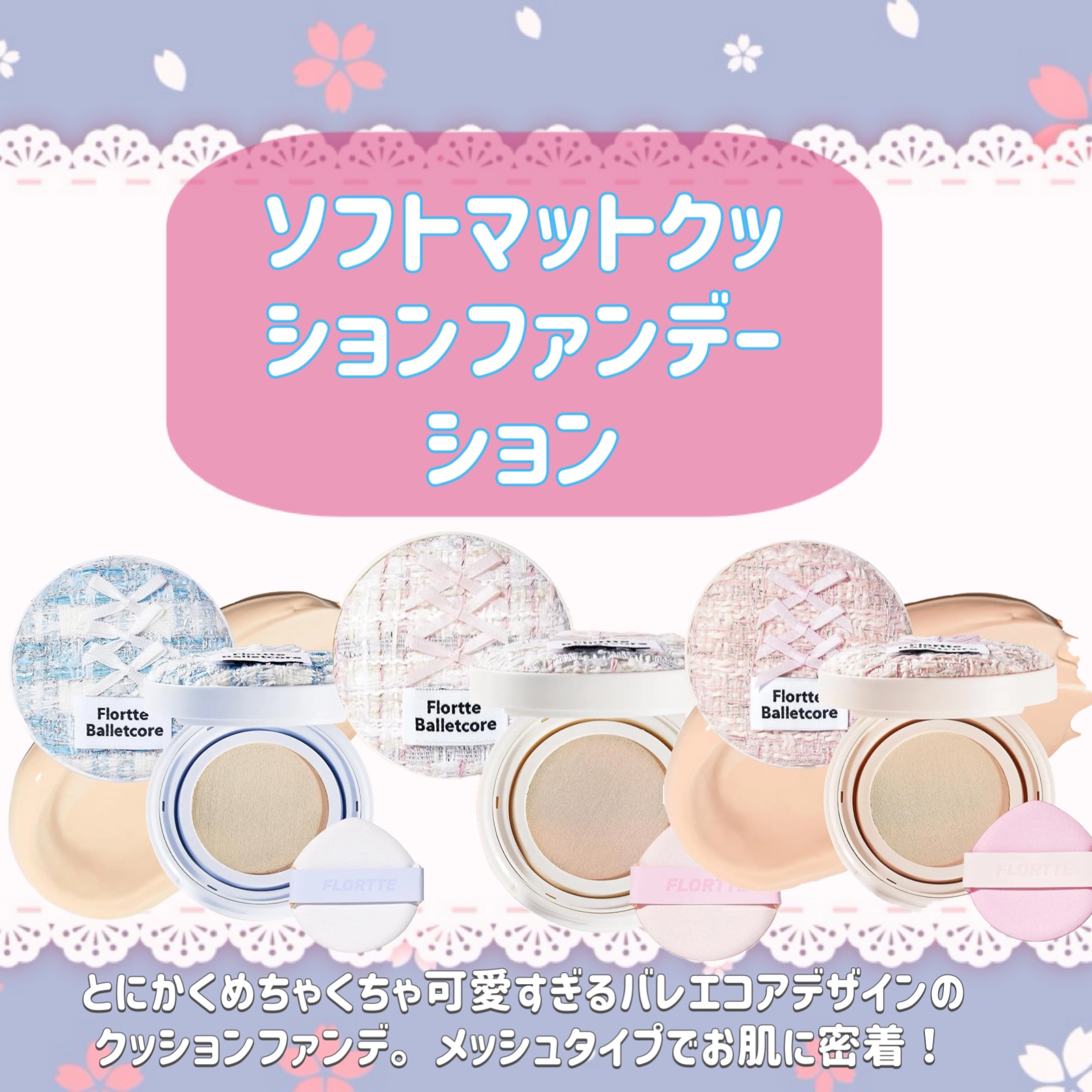 【可愛すぎ】かって良かったバレエコアクッション♡———-♡——————–♡———FLORTTEバレエコアソフトマットクッションファンデーション01クリームスフレ(01ピンク)1,909円(Qoo10)———-♡——————–♡———これパケ買...