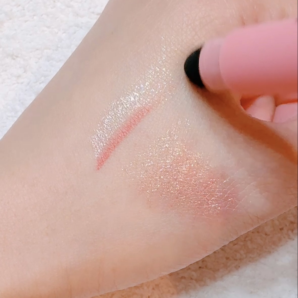 ペンシルタイプのアイシャドウ❤️❤️ 付けたては馴染ませたり可能で時間が経つとヨレない‼️落ちない‼️とっても良い😆 カラーも使いやすいカラーばかりで涙袋に使っても夕方までしっかりキレイ😌滲まないから凄い良い👍👍 ペンシルだけど柔らかく目に負担なくスルスルつけられる☺️
