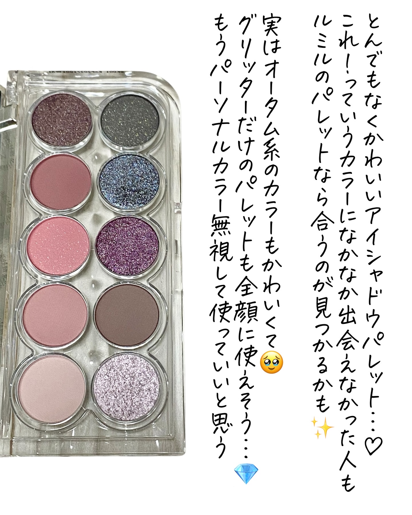 プラムローズの陰影カラーに雪みたいなホワイトラメがかわいい❄️ 韓国で人気のメイクアップアーティスト イスル先生プロデュースのメイクアップブランドLUMMIR 🎠💖 深みのあるプラムローズの陰影ベースとポイントカラーのグレーブルー、月の光が差す時間帯の夜明けカラーをイメージした配色だそう。