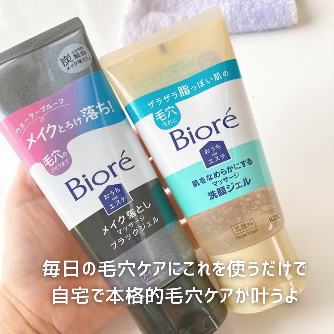 ビオレおうちdeエステシリーズで毛穴ケア今回はジェルのクレンジングと洗顔なかなか完全にはなくならない毛穴隠してみたり隠そうとしたら余計に目立つことも…クレンジングは炭(洗浄助剤)配合でW洗顔不要緑の洗顔は脂性肌向け🫛毛穴が気になる部分はもちろ...