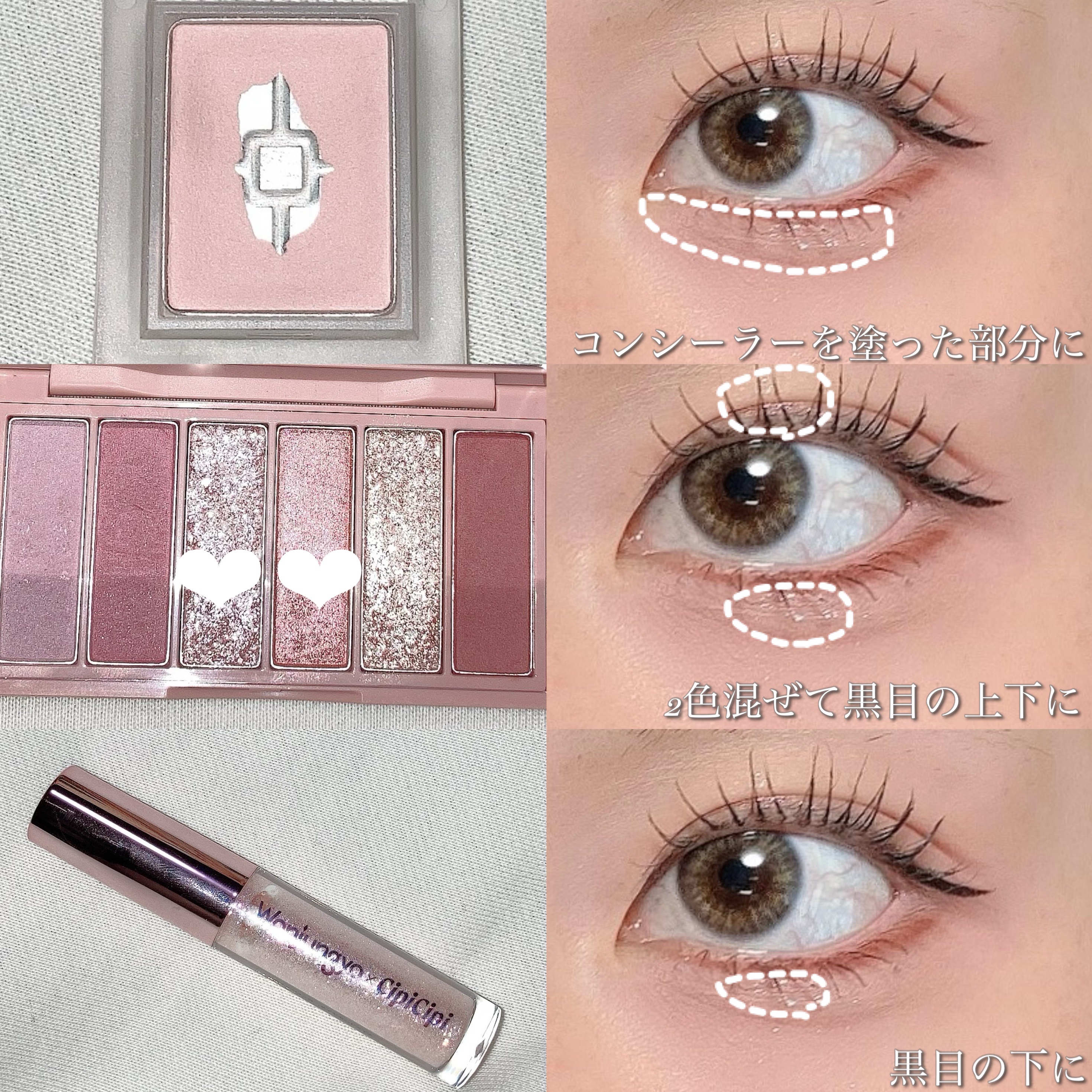 アイシャドウ👀・CLIOプロ アイ パレット01SIMPLY PINK グリッター✨・PERIPERAデュオ ポケット グリッター シャドウ03SALTED SUGARPLUM 涙袋のコンシーラー👧・キャンメイクカラーミキシングコンシーラーオレンジベージュ マスカラ💇♀️・rom&ndハンオールフィックスマスカラL02LONG ASH アイライン✏️・キャンメイククリーミータッチライナーダークブラウン・CEZANNE極細アイライナーEX20ブラウン