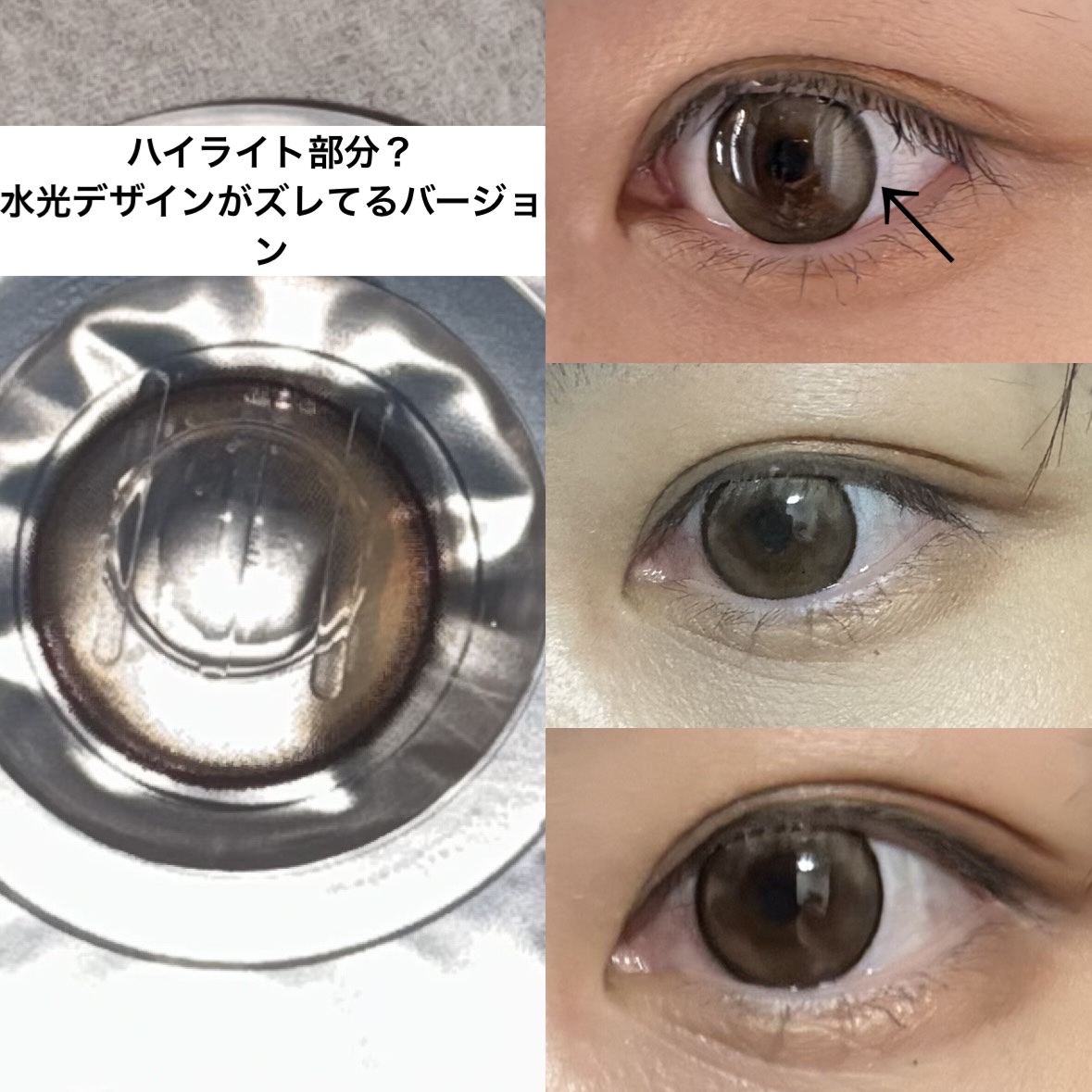 計算されたベージュカラーできらめくグラデーションにこだわった水光デザイン🫧 きらめきとレンズがズレても自然に見えるので初めて水光カラコン着けて見たんですが 0.06mmの挑薄型レンズなのでレンズを薄くしてて異物感を軽減してくれるカラコンです🤎