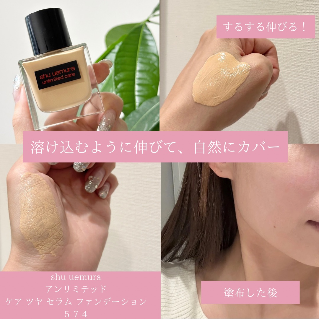 shuuemuraアンリミテッドケアツヤセラムファンデーション🤍574LIP様を通じて、shuuemura様よりご提供いただきました!薄づきハイカバーな美容液ファンデ!!美容液成分がたっぷり配合されていて、使うたび肌を整えて潤いに満ちた肌にし...