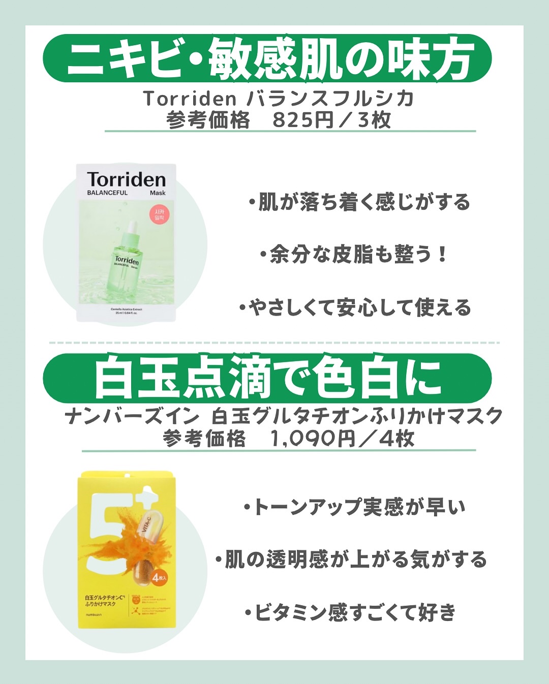 ナンバーズインってとても人気ですよね! 1番〜9番ってめっちゃ番号があるんだけど何が自分に合ってるか分からないですよね... ドラッグストアで結構置いてるので、買う時にどれがいいか悩んだ時の参考にしてみてね🫶 絶対に老けない肌作り! ◻️-10歳若返り老けない肌に🇰🇷 ◻️ノーファンデで褒められるすっぴん美人に✨