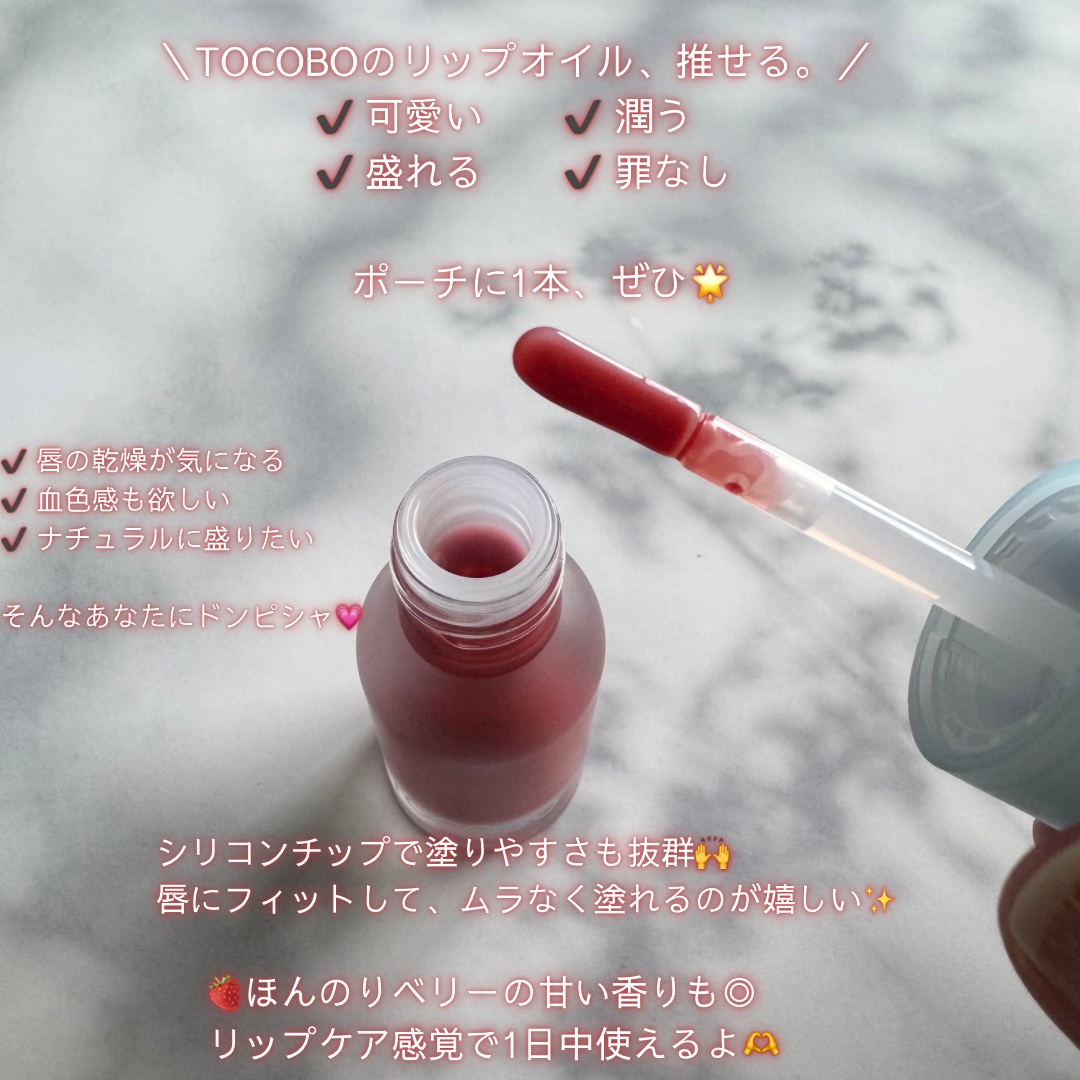 TOCOBO@tocobo_jpジューシーベリープランピングリップオイルリップケアからツヤ感アップまでぜんぶ叶うTOCOBOのリップ💄日本限定色も発売されているよ✨まるでシロップのような発色で塗った瞬間、ふっくらボリュームUP!ツヤも色も保湿...