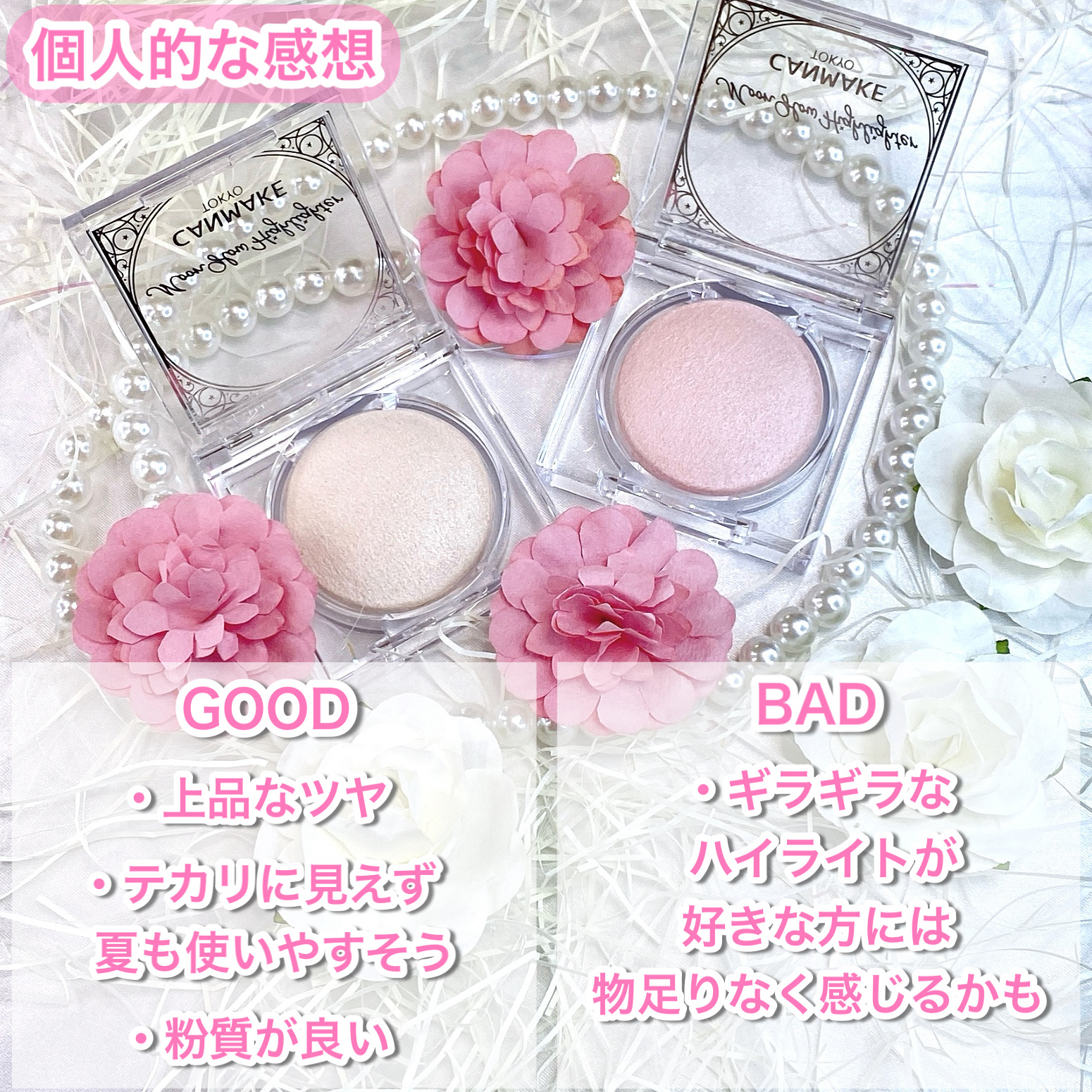 LOFTで即買いしたキャンメイクの新作ハイライター、写真映え確定のつやん感増し増しで神々しい...💎880円という超プチプラでは珍しいベイクド製法、パールを潰さずに作れるから配合したパールそのままの艶感を表現できるそう🥺🤍ロフトで先行発売中、...