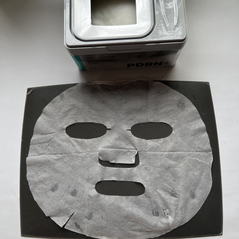 VTCOSMETICS様より、ご提供いただきました✨デイリーマスクより、少し分厚め肌当たり優しく、刺激感はほぼなしの、滑らかで触り心地の良いシート香りはリードルSPDRN+セラムと同じ感じほんわかな香りで気になりませんでした10〜15分ほど使...