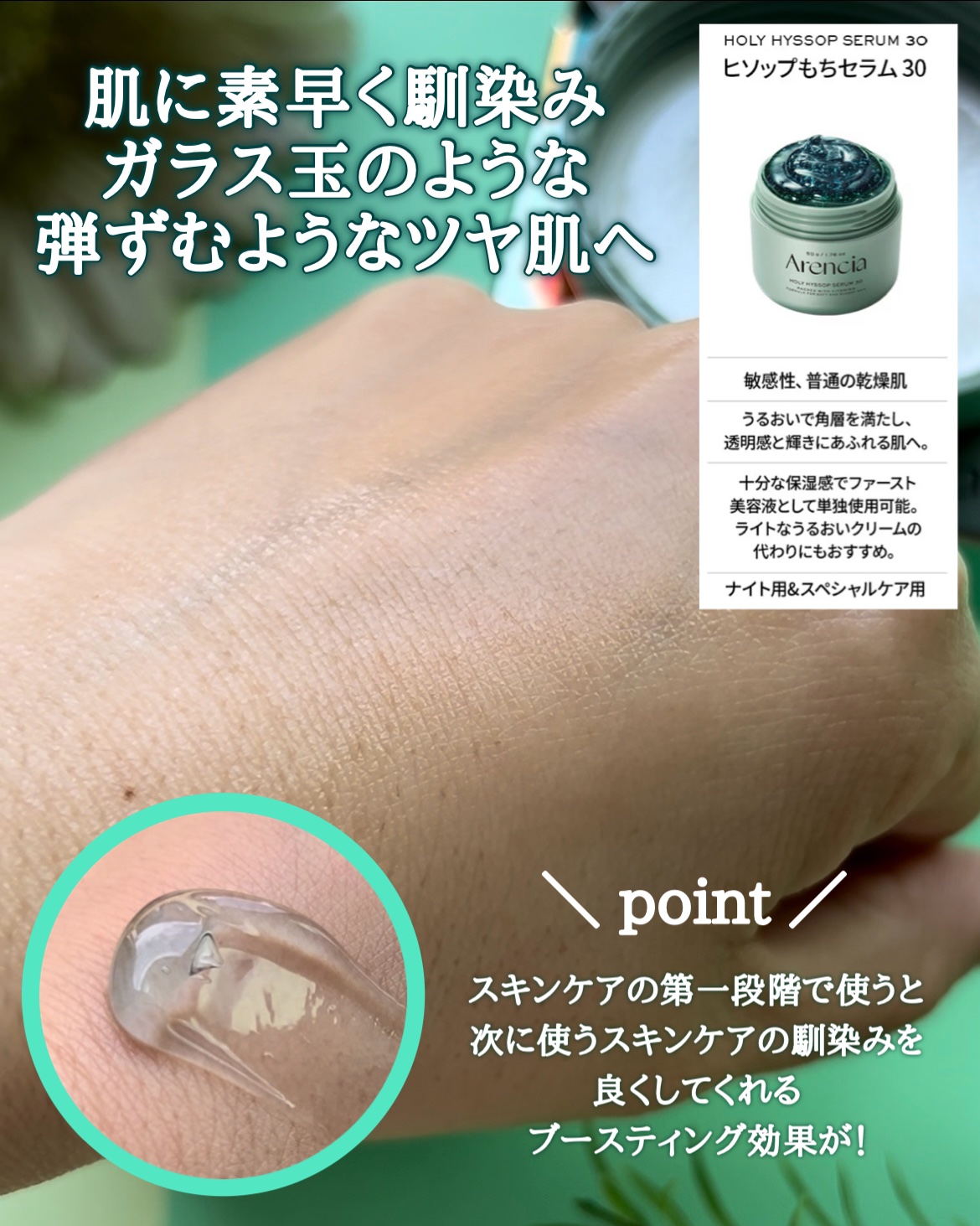 Arenciaアレンシア💚『ヒソップもちセラム』50g(美容液)〜自然からの贈り物つるんとたまご肌へ〜Arencia様からキャンペーンにて🎁いただきました🐦ありがとうございます💓🪷ぷるぷるぷるんとみずみずしくひんやり軽やかで爽やかなブルーグリ...