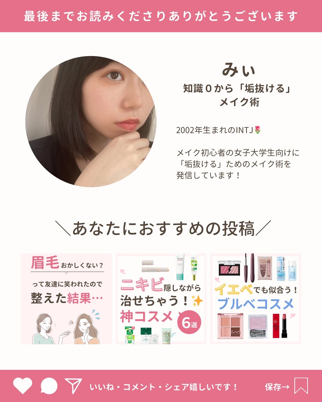 メイクの流れを覚えておけばあっという間に慣れてきますよ✨ 回数を重ねて頑張っていきましょう〜!✊🏻´- 「メイクで垢抜けたい大学生」に向けて 垢抜けメイクのアドバイスをしています! コツさえ掴めばメイクで「垢抜け」ます!!