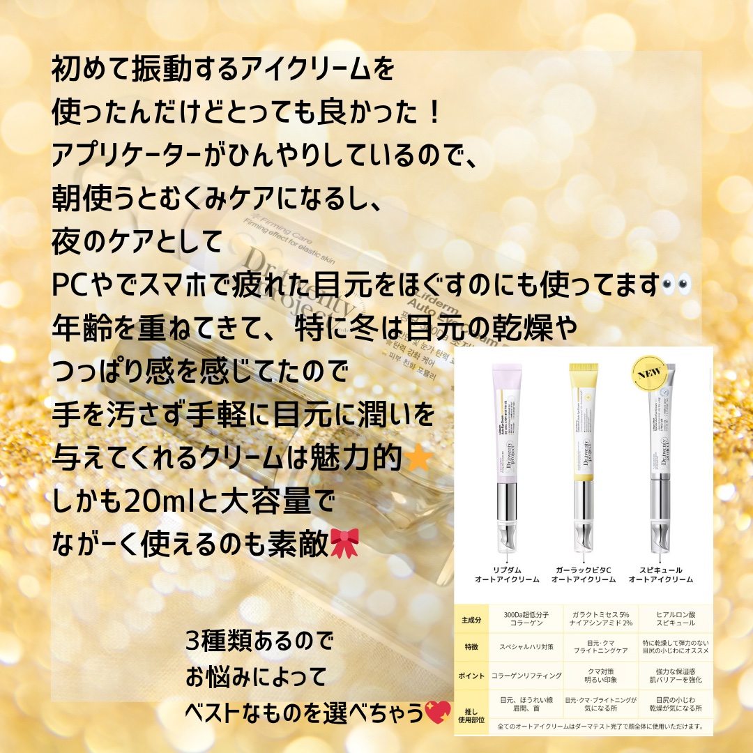 Dr.twentyproject(@dr20project_jp)様よりいただきました︎︎私の超推しアイクリーム!✼••┈┈••✼••┈┈••✼••┈┈••✼••┈┈••✼▫️リプダムオートアイクリーム300Da超低分子コラーゲンで目元の小ジ...