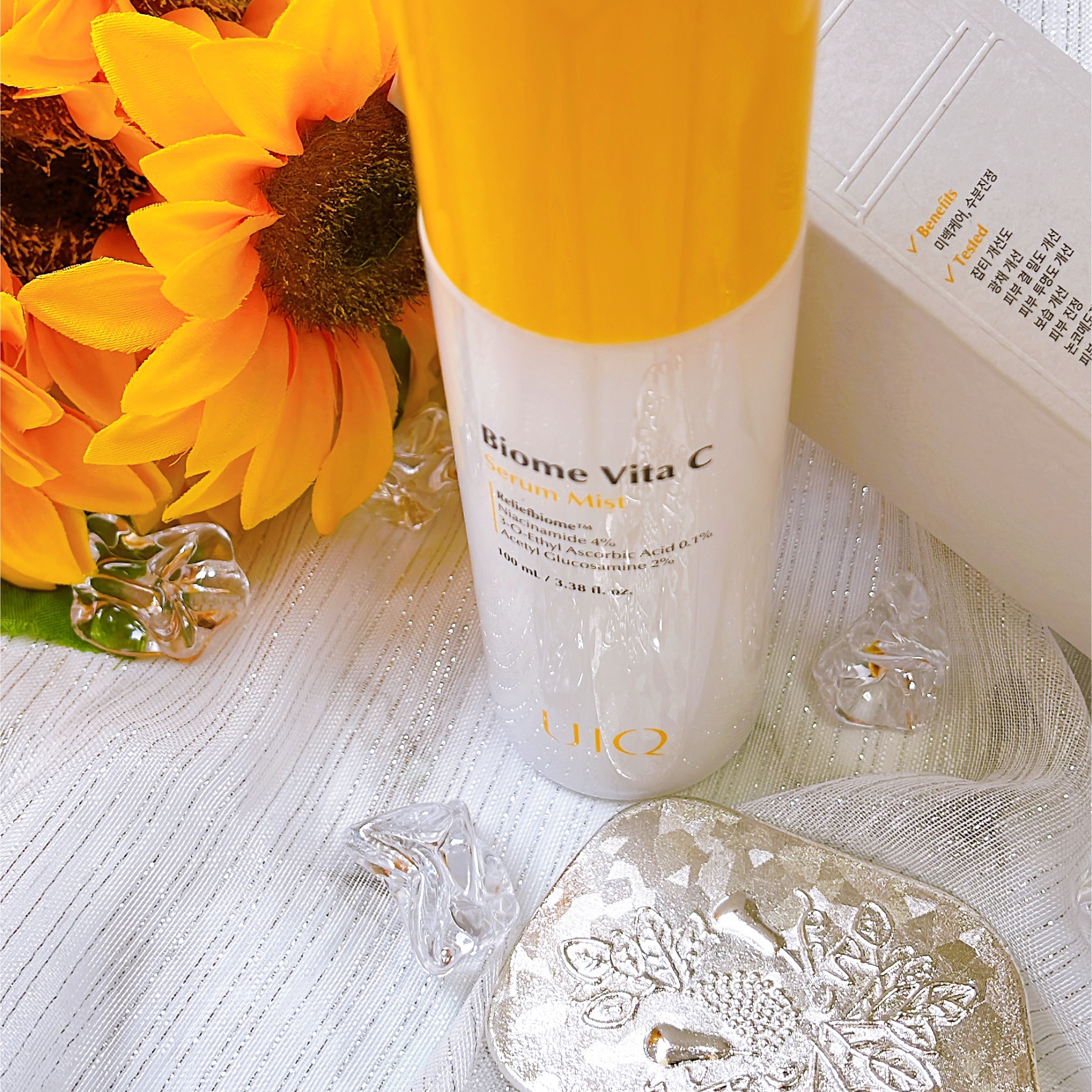 ミストで透明白玉肌UIQBiomeVitaCSerumMist(バイオームビタCセラムミスト)2,640円(税込)メイク後のキープミストに日中の美白、鎮静ミストにインナードライの肌の保湿ミストなどに使えちゃう万能ミストナイアシンアミド・ビタミ...