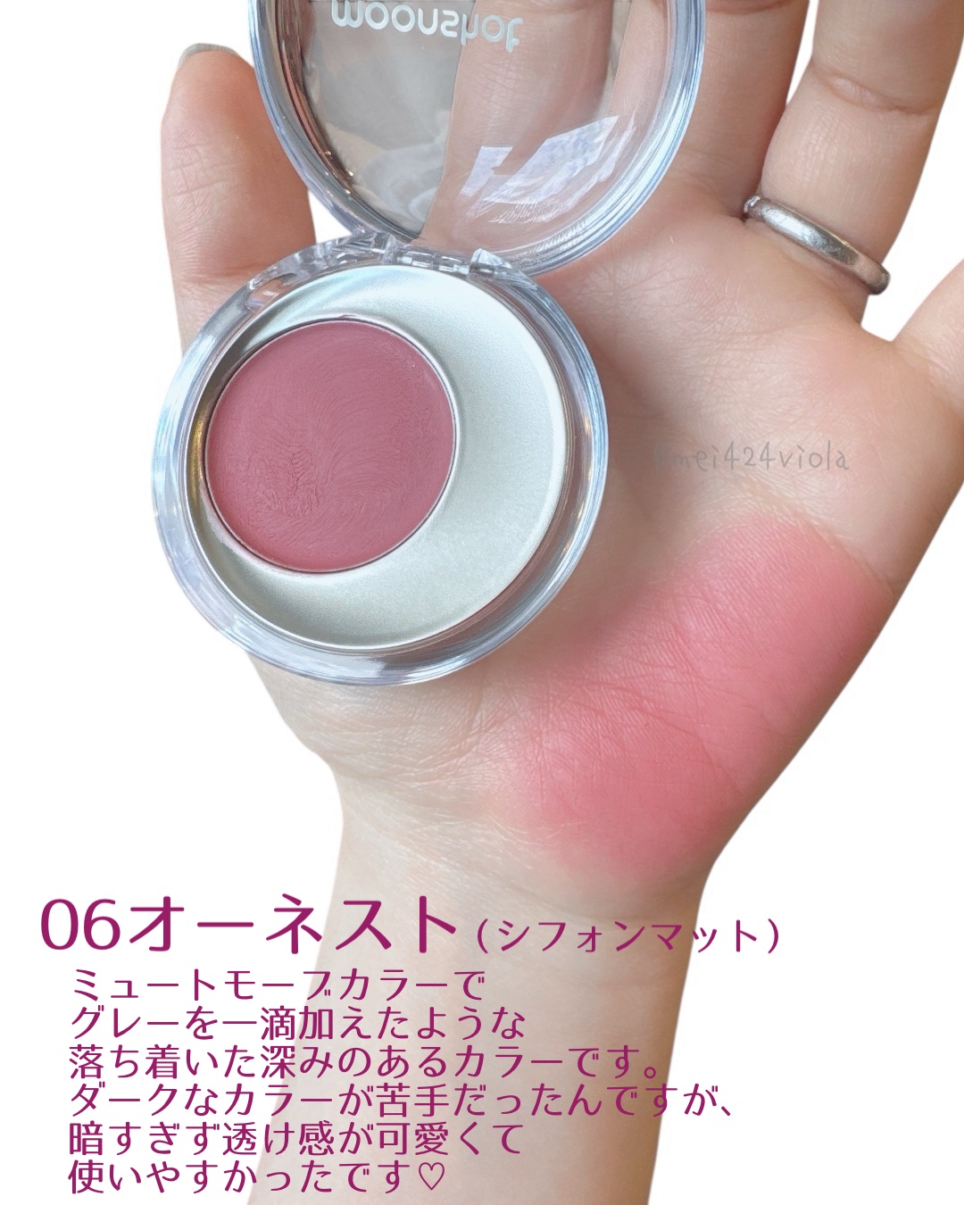 もう説明不要のロムアンドのティントですが、グラスティングウォーターティントの方が肌になじむ透け感のある水膜ティントです💡 10番のチジャベージュは漢服エディションとして発売されたんですが、透け感のあるコーラルベージュで、イエベ春さん絶対好きなやつ… ロムアンドの定番のやつですね。他のカラーも持っているんですが、今回スウォッチした色は発色がパキッとし過ぎてなくて使いやすいです♫