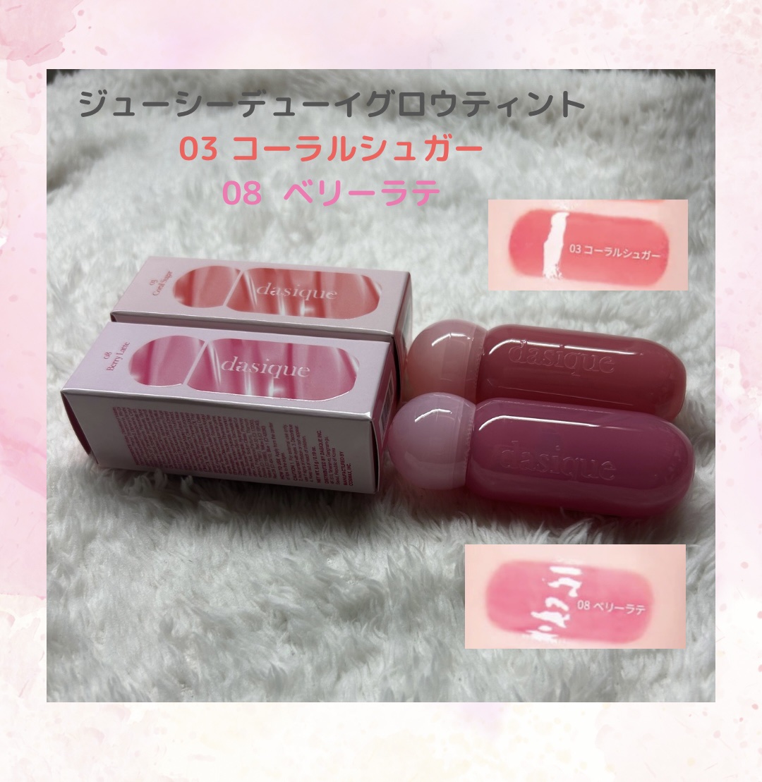#PRdasiqueさんからジューシーデューイティントをいただきました🩷うる艶むっちり!発色ばっちり!色残りしっかり!な使い心地🥰01~07がイエベさん向け、08~14がブルベさん向けになってて分かりやすい♡私は07と14を試させてもらったよ...