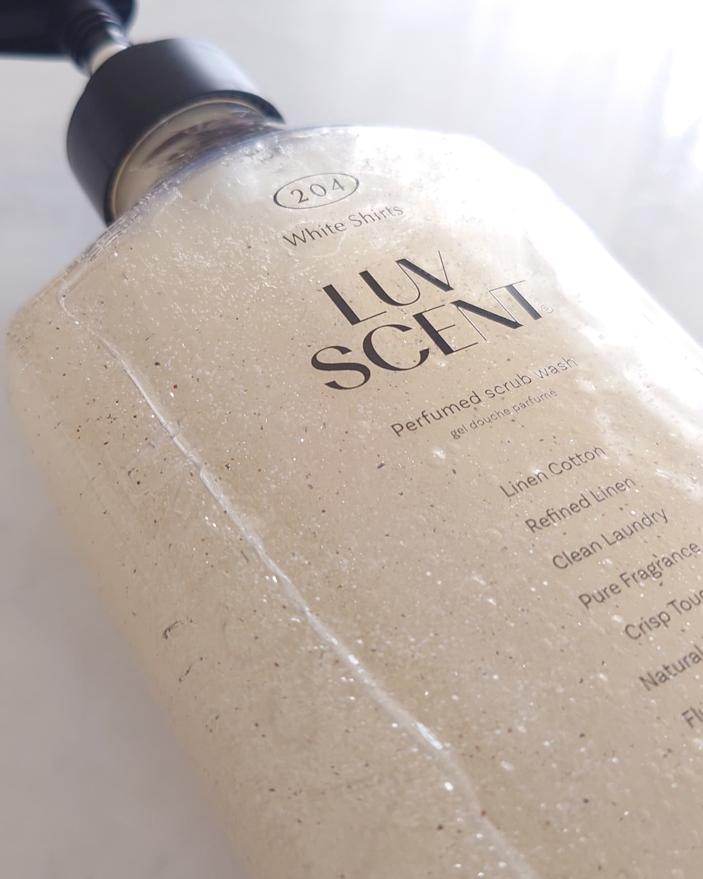 .LUVSCENTパフュームスクラブボディウォッシュ[204]ホワイトシャツ(リネンコットン)..キラキラのラメが可愛いスクラブボディウォッシュLUVSCENT✨️ロフトKコスメフェスティバルで先行販売中の新商品「ホワイトシャツ」を使ってみま...