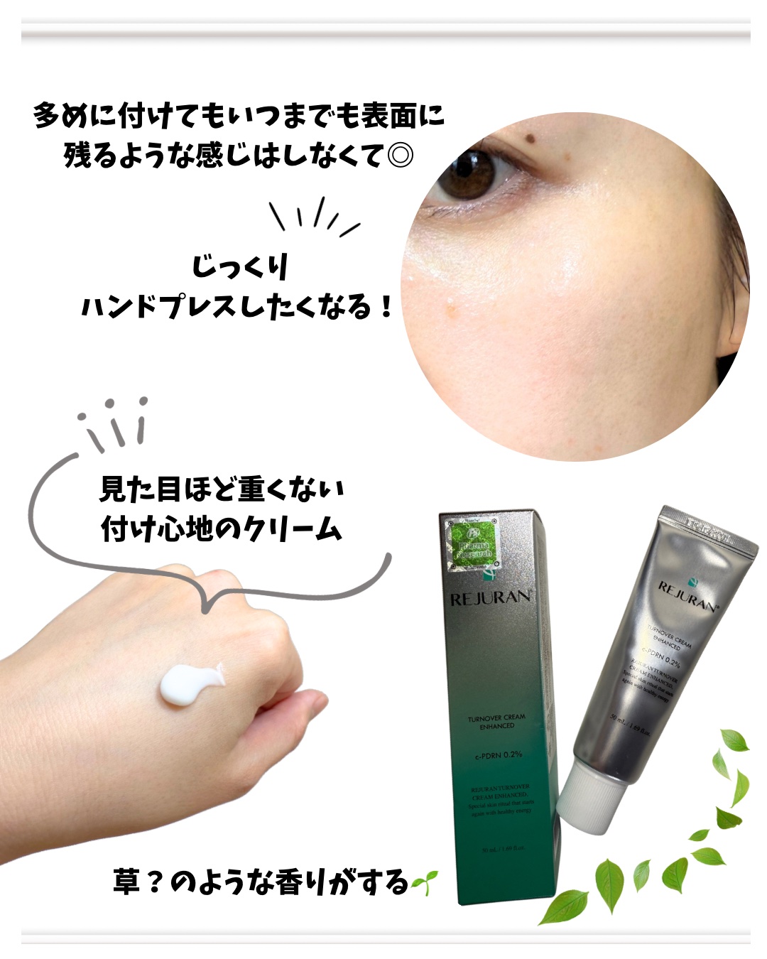 リジュランターンオーバークリームエンハンストをおためししました。全製品にリジュランのコア成分であるc-PDRNが配合され、弾力・アンチエイジングが可能です。肌の深部から湧き出る健康的な肌のツヤを演出できます。やわらかく自然に塗布されるクリーム...