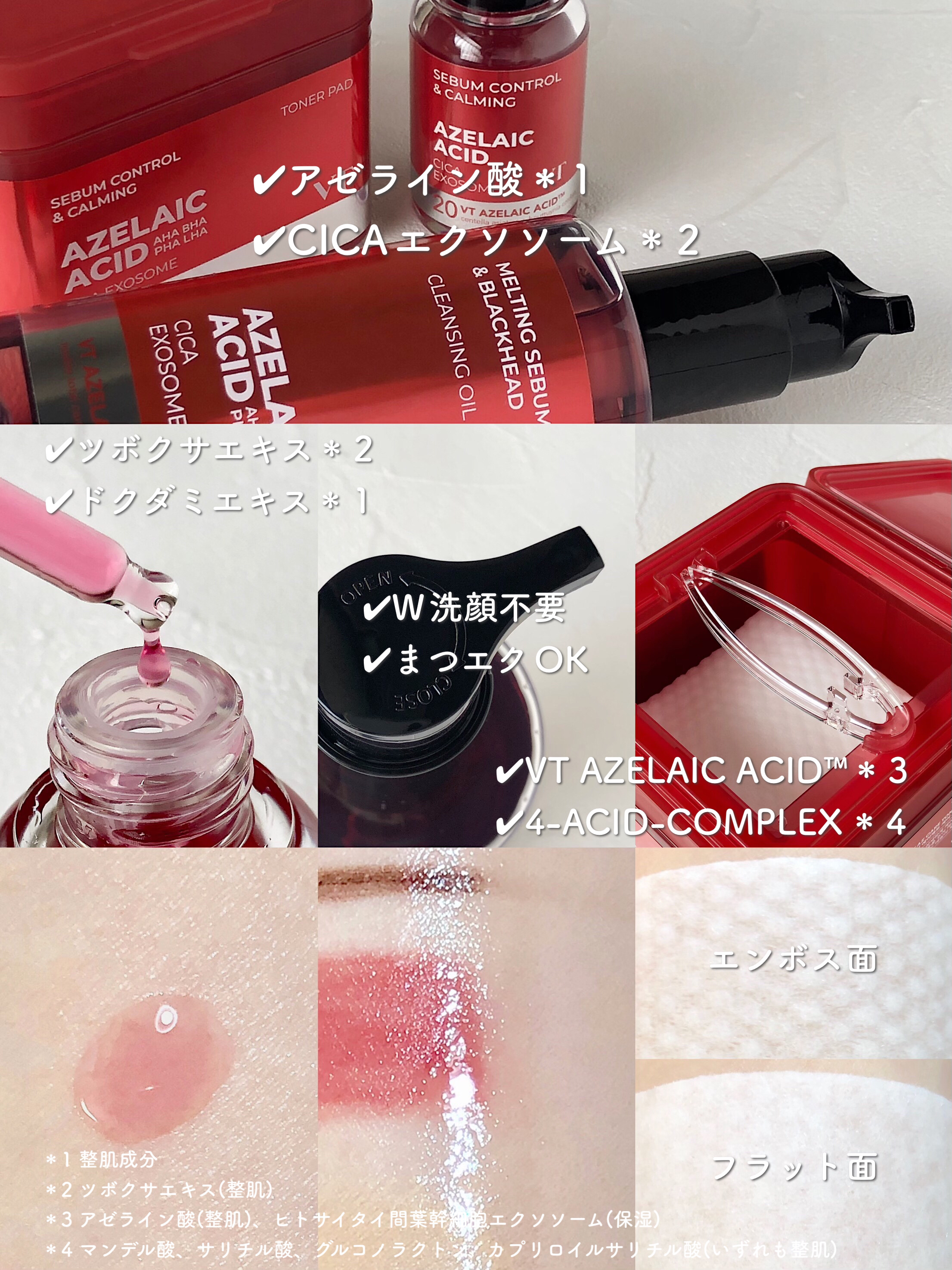 VTさまからいただきました ❤️アゼライン酸三種の神器❤️✔︎A1カーミングアンプルアゼライン酸アンプルさらっとしたテクスチャー❤️軽いつけ心地でべたつき気にならないしっとりした仕上がり!肌触りなめらかに✨✔︎AZケアクレンジングオイルW洗顔...