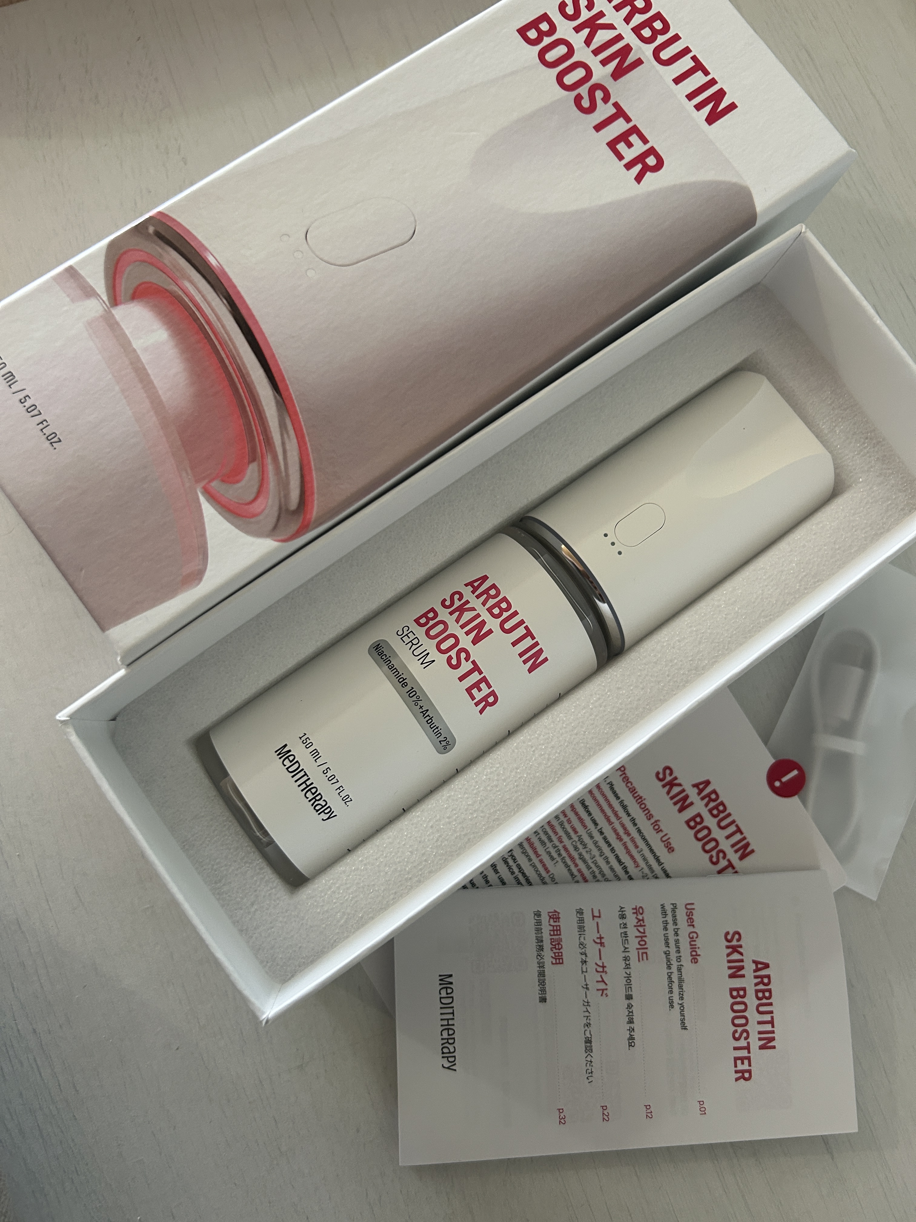 \最先端のスキンブースター!/MEDITHERAPY▶︎ARBUTINSKINBOOSTERSERUMナイアシンアミド10%とアルブチン2%配合で、メラニンの生成を抑えてくれるセラム!キャップの部分がEPデバイスになっていてワンタッチで3段階...