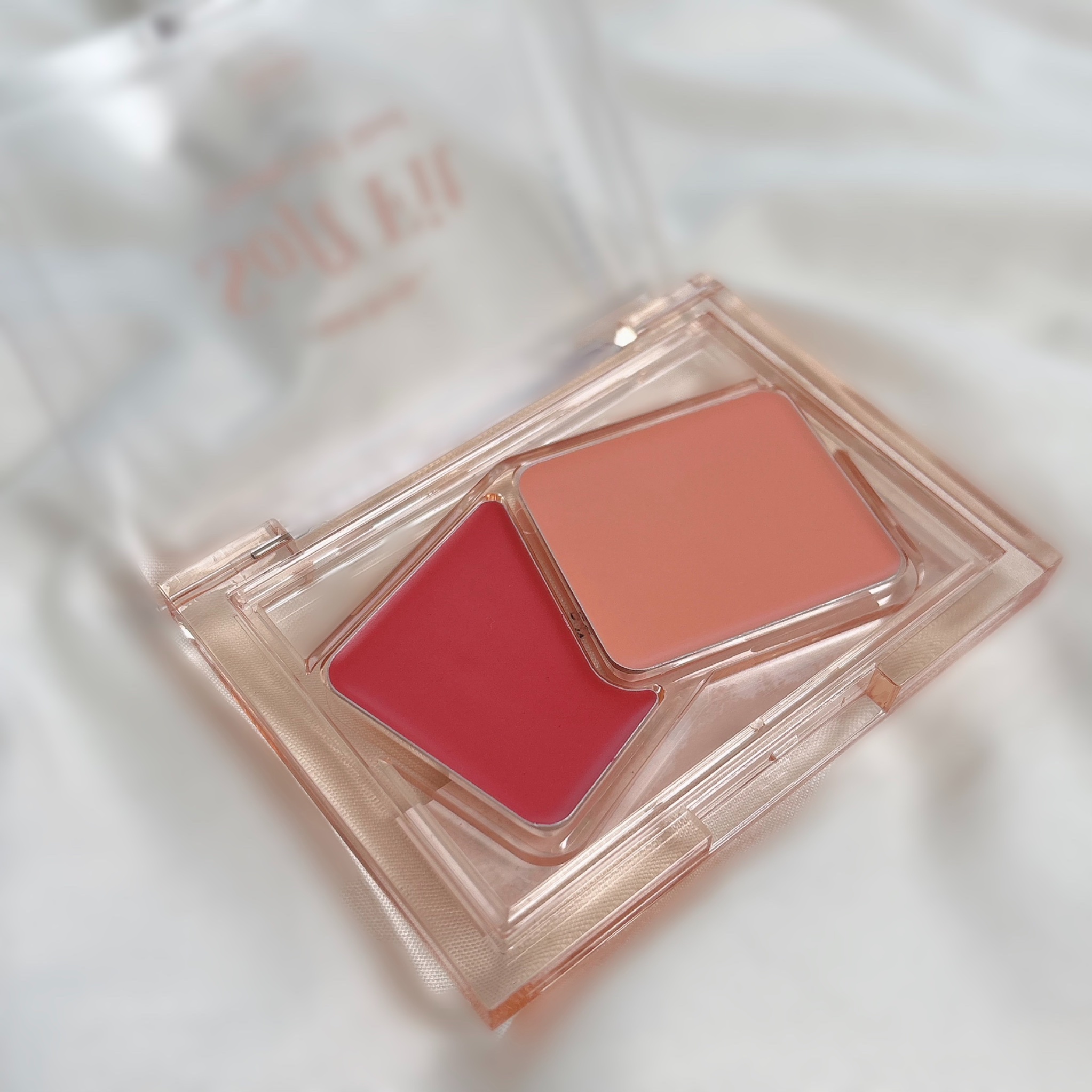 血色感のある、パールピンクのハイライトと青みピンクカラーの組み合わせパレット💕 パウダーでは表現できない、粉っぽさのないツヤ感。しっとりしてるのに、つけた瞬間サラッ。 青みピンクはイエベ無理かなーっと思いましたが、透明感があり、色はほんのりつくので馴染みました。