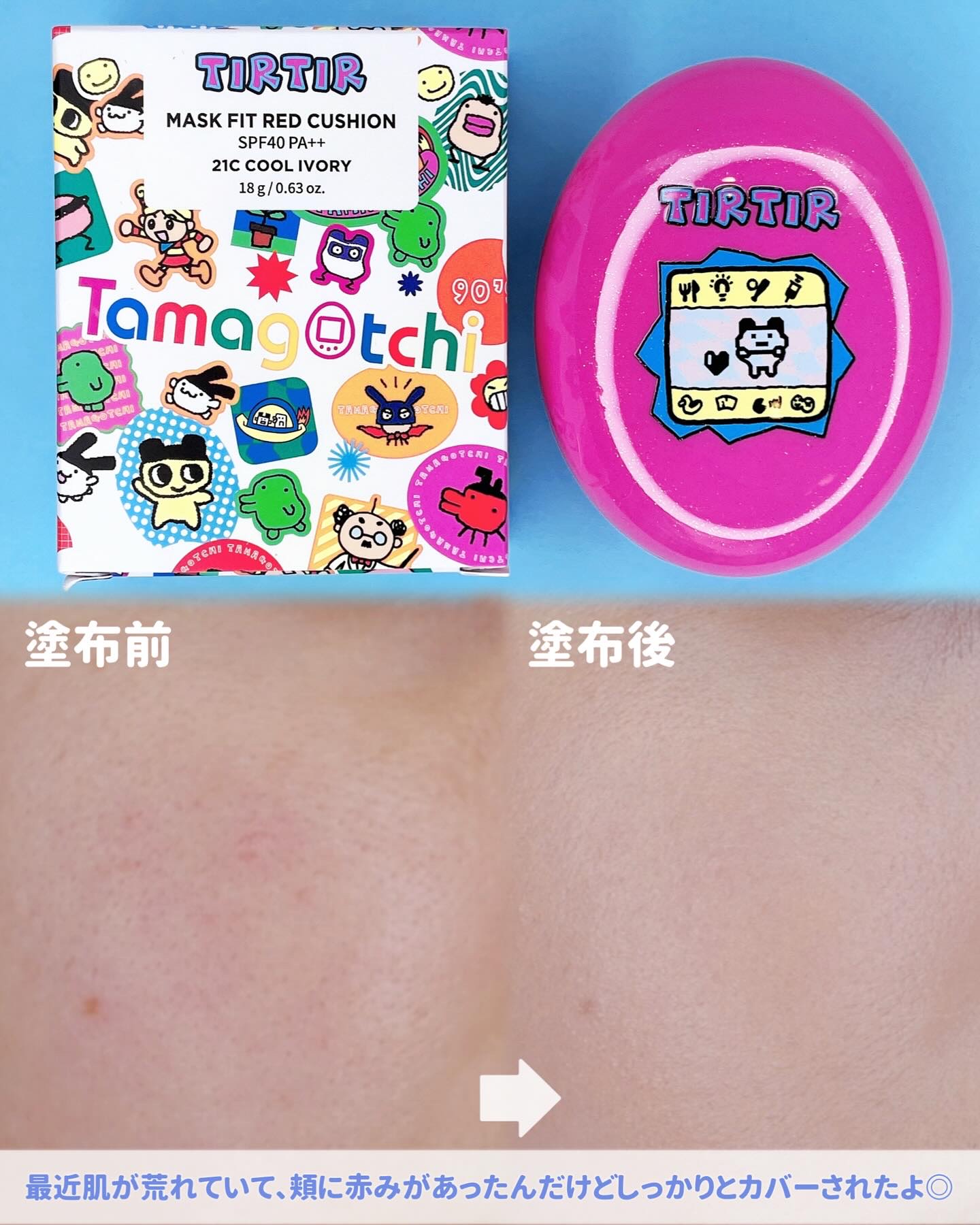 【たまごっち】...首からたまごっちぶら下げていた平成6年生まれのわたくし。.たまごっち×TIRTIRコラボデザインのクッションファンデ発売めちゃくちゃ楽しみにしておりました。.パケがもうたまごっち!しかもパフもかわいいの。.仕様やカラーは赤...
