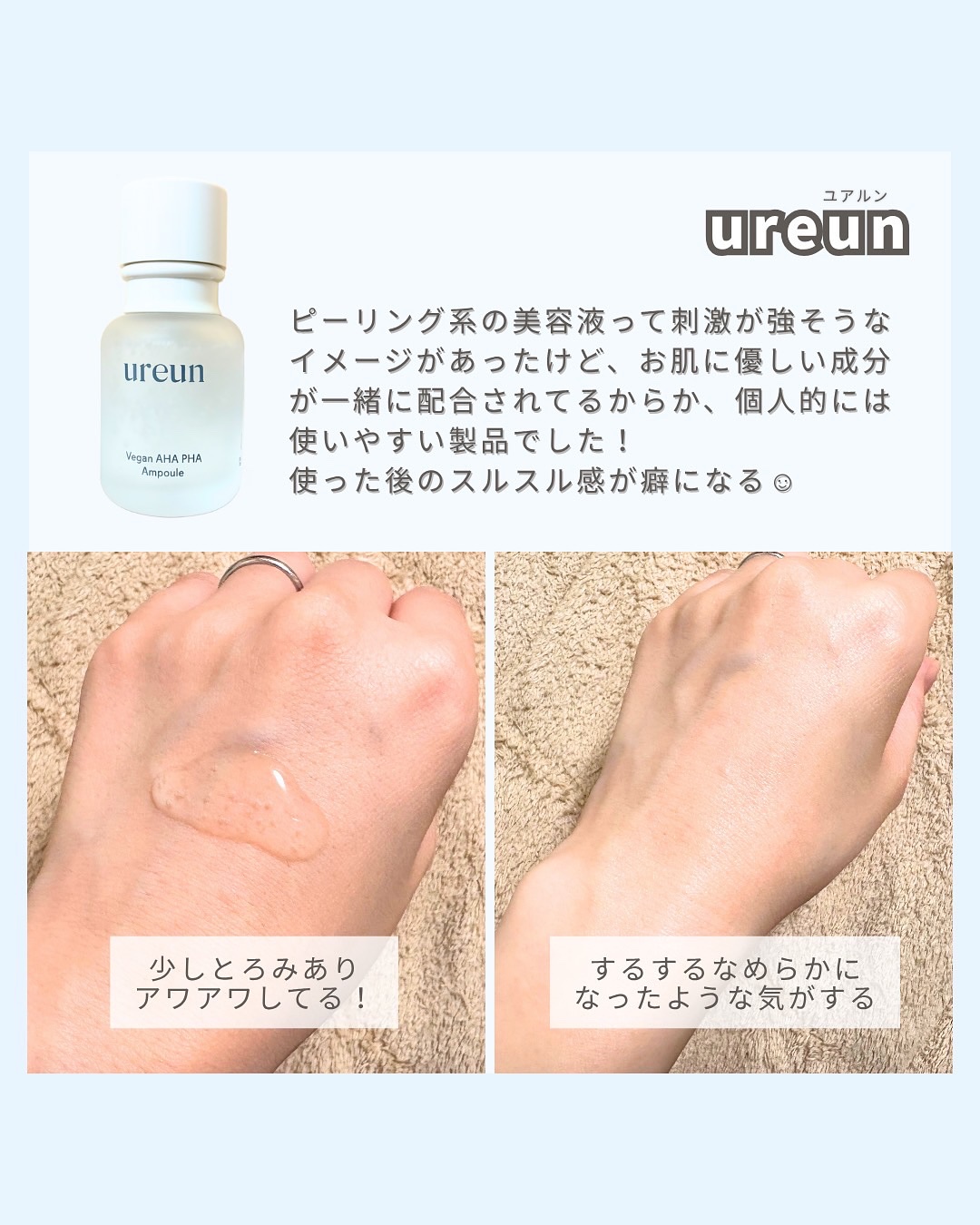 #PR#UREUN@ureun_jpureunVeganAHAPHAAmpouleです🩵55ml。子供も大人も使えるヴィーガン化粧品ユアルン💑AHAグリコール酸3,500ppm+PHAグルコノラクトン1,000ppm配合。ティーツリー葉油、ロ...