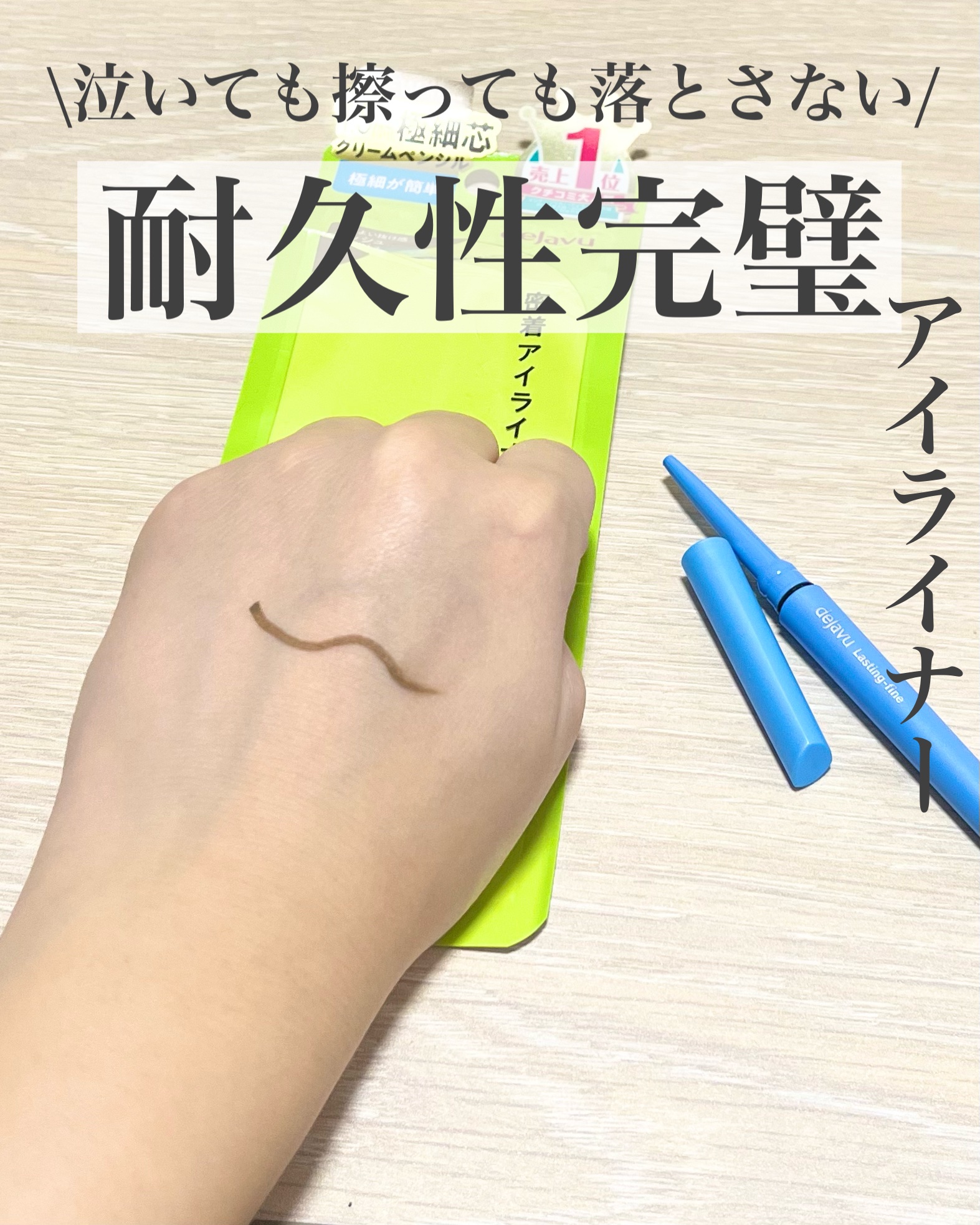 lips様のプレゼンキャンペーンでデジャヴ様の密着アイライナー 極細クリームペンシルをいただきました✨極細ラインが簡単に描けます!芯の強度となめらかさがちょうど良くてすごく描きやすく発色も良くておすすめです!しかも描きたてのラインが一日続いて...