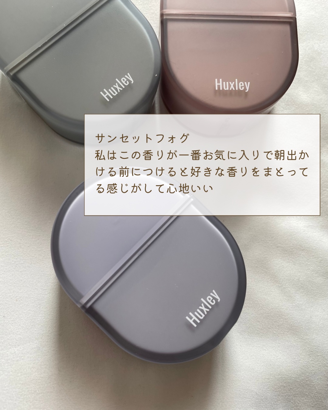 #PRHuxleyヘアパフューム3種モロッカンガーデナー・ローズピッカーサンセットフォグサボテン花エキス配合でヘアケア効果◎ふわっと香り指通りがいいのもお気に入りポイント🤍パケもくすみカラーでコロンとしたフォルムも可愛い🌵"個人的にサンセット...