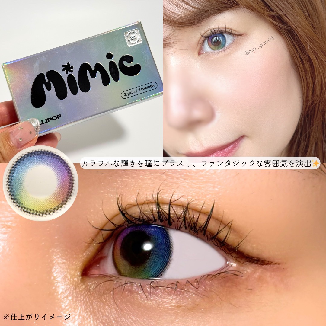 【MiMic】Lollipop種類展開2種・NATURAL(ふんわり発色)・VIVID(高発色)どちらも1month世界初8K画質カラコン瞳と自然に溶け込むデザイン瞳にフィットする形状イベントにつけて行きたくなるようなカラフル×独特なデザイン...