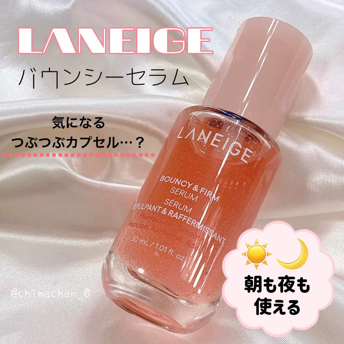 - LIPSベストコスメ受賞の「バウンシースリーピングマスク」から美容液「バウンシーセラム」が登場! ラネージュ独自のビタミンオイルカプセル*¹が1瓶に24,000個配合。 バウンシーシリーズ共通のピオニー&コラーゲンコンプレックス™*²や4種のペプチド*³配合で、 すみわたるような輝き*⁴とキメの整ったなめらかなハリツヤ肌へと導くアーリーエイジングケア*⁵美容液。 *¹ テトラヘキシルデカン酸アスコルビル(整肌成分)、トコフェロール(整肌成分)、トリオレイン(保湿成分) ※30mL(現品)に24,000個のカプセルを配合 *² シャクヤク花エキス、シャクヤク根エキス、水溶性コラーゲン(整肌うるおい保持成分) *³ アセチルヘプタペプチド-4、アセチルヘキサペプチド-8、アセチルオクタペプチド-3、アセチルテトラペプチド-2 (いずれも保湿成分) *⁴ うるおいによる *⁵ 年齢による肌のお手入れのこと