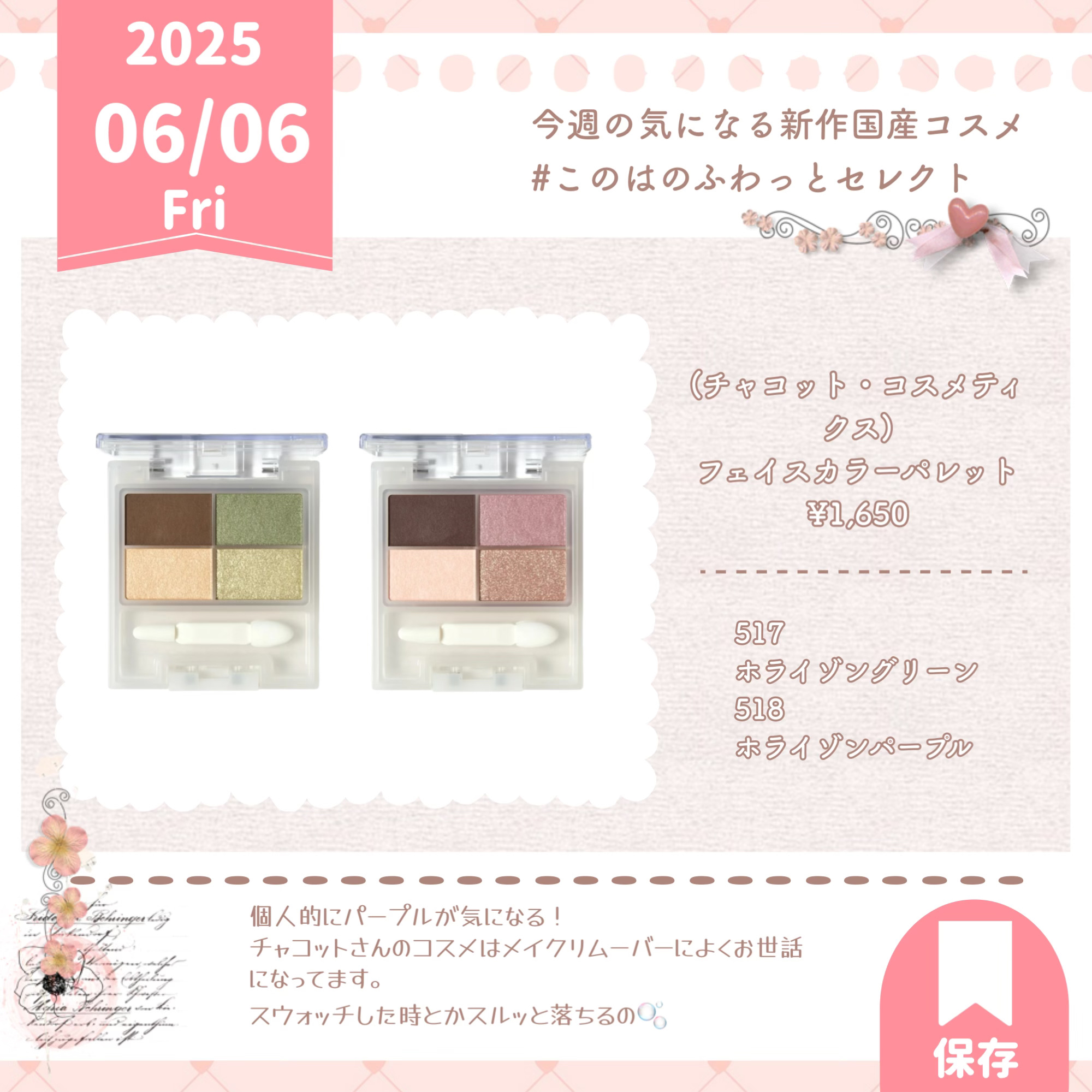 チャコット・コスメティクス フェイスカラーパレット | 1,650円 |